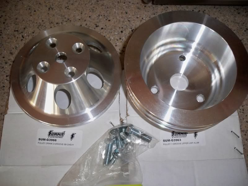*SOLD* Summit billet aluminum pulleys, long pump single groove (G3963, $36 new) & double groove crank pulleys (G3966, $50 new). Only mounted, never run. $60 shipped. http://i29.photobucket.com/albums/c2...e/101_1964.jpg Summit 600 carb, electric choke (SUM-M08600VS, $260 new), mounted once but never run, still have box, instructions, etc. $230 shipped. http://i29.photobucket.com/albums/c2...e/101_1949.jpg http://i29.photobucket.com/albums/c2...e/101_1961.jpg *SOLD* 3/8 & 1/4" braided stainless fuel hose & related fittings. 3/8 is in 12.5' & 5.5' in length. Originally in chevelle w/ 3/8" from tank to pump, pump to regulator on front inner fender w/ dual 1/4" to carb, related Earls fittings (including 3/8 NPT plug & fuel gauge adapter, 3/8 Russell inline filter, carb inlets and 3/8 barb style Spectre inline filter (brand new), Spectre hose clamps (new) and mounting clamps. $125 shipped for everything. http://i29.photobucket.com/albums/c2...e/101_1965.jpg |