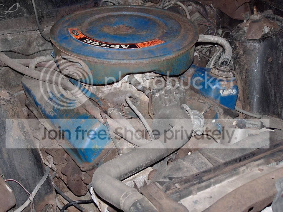 351 c Stock distributor - Can get numbers if you need them Bladder tank for Hideaway headlights Actuator for hide away headlights origional 2v intake origional 2bbl carb 2v air cleaner w/o snorkel valve cover 2v heads and manifolds im sure the list will continue to grow as i get deeper into it What i need R & L Front fenders Hood front bumper Front and rear stone guards Pass side door 4 spd toploader Z bar |