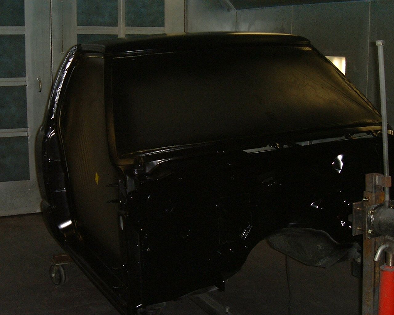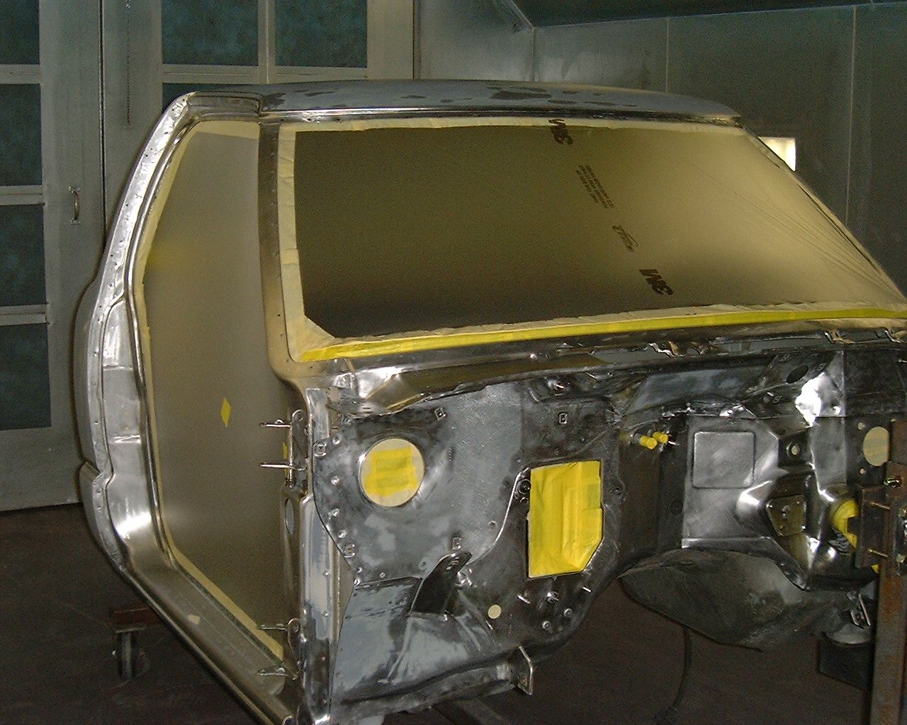 The cab had a little rust in the lower firewall on the right side that was cut out and repaired than we epoxy primed the cab