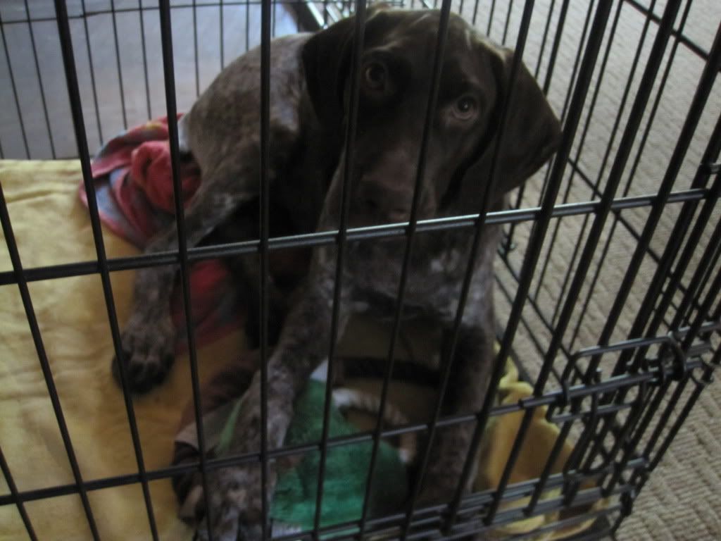 "Loki" - 4mo old male German Short Haired pointer, liver and white: