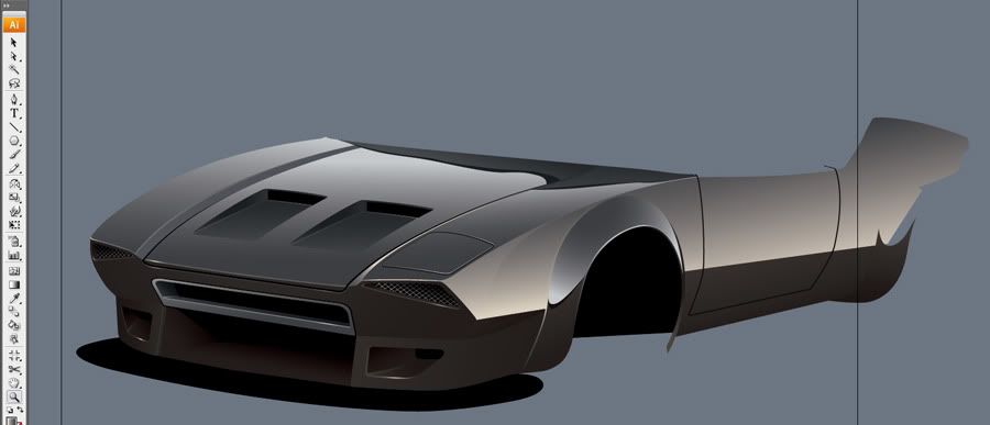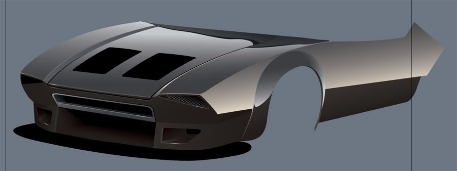 I threw a sketch into the thread with the poll but figured it was pretty cluttered up so a new one was in order. I'm getting the foundation of the front end put together now, but there will be lots added of course as this goes along. I'm using gray with a touch of yellow to warm up the paint facing the ground and viewer to capture the Porsche Slate Gray Metallic. And I'm using gray with a touch of blue for the sheet metal facing the sky. When I think of slate, I think of a cool gray, but the actual color is more of a warm gray.
