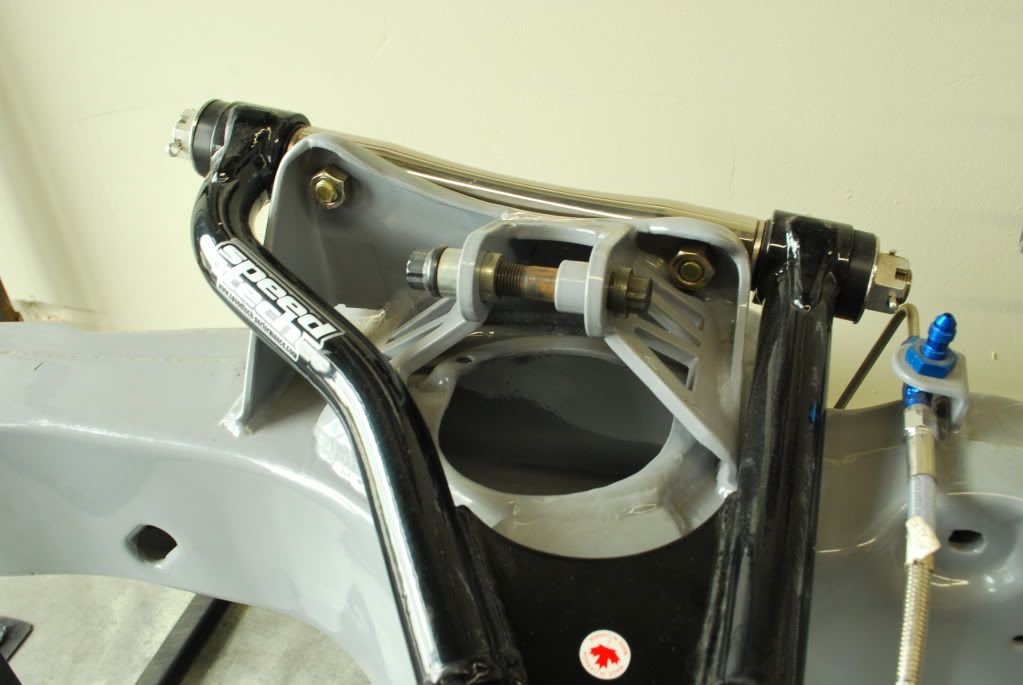 you do not have to move the bolt holes BACK as the GM shows, if your using a tubular UCA that has caster built into it. The rear bolt hole for the upper control arm gets very close to the Chicane bracket. here is a pictuer of it all installed on my car with the bracket cut off and moved. http://i1235.photobucket.com/albums/...a/DSC_1138.jpg Here is the original ATS Chicane as you can see the Chicane bracket is in a slightly different location on both. See how the rear of the Chicane bracket mounts to the original UCA mount and on the one above it is mounted forward of the UCA mount. http://i1235.photobucket.com/albums/...a/DSC_0013.jpg In the top picture I ended up with 8 deg of caster and -.25 camber. but it is a drag car hope that helps. |