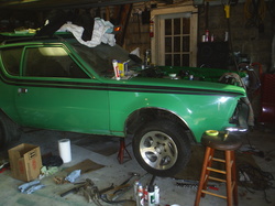 Hey guys. Here a little bit about me and the car before we get started. Im 24, and Ive had this Gremlin since i was 16. She was my daily driver as a 232 straight 6 with an automatic on the column. I drove it literally into the ground! Three transmissions and four years later, I said the hell with it! and went searching for a much better transplant. I was lucky enough to find in a couple towns over a guy who had a bunch of AMC parts and purchased a 343 V8 pulled out of a 68 AMX along with the Model 20 rear from the same car.