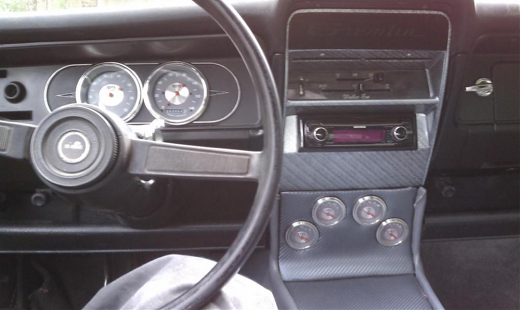 Here are some pictures of building my console, my radio bezel, new gauges, and making a custom plate that lights up a Gremlin script within the dash when the ignition is on