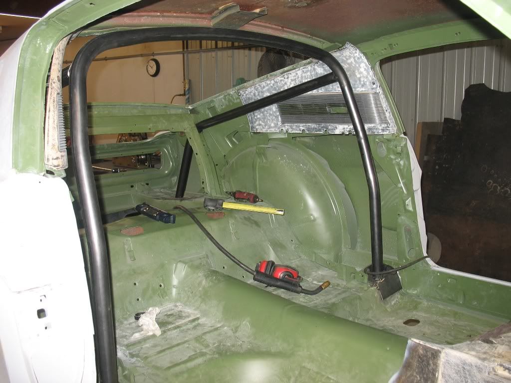 We made a roll bar that fits a little nicer than a shelby style bar, it is arched to match the roof and the down bars are arched to match the interior panels!