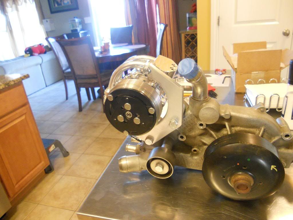 I Thought I had everything figured out for my set up a ls2 with a 2.8l Kenne Bell supercharger for my 65 Chevy II with a DSE Front clip. I tried to modify my original set up which was for a truck. This did not work because the belt was way to long and I was having a rough time lining up the pulleys. And when I went to fit the A/C on it hit the inner fender panel. So I modified the Kwik A/C bracket and I could not get the belt to run true. (see pic)