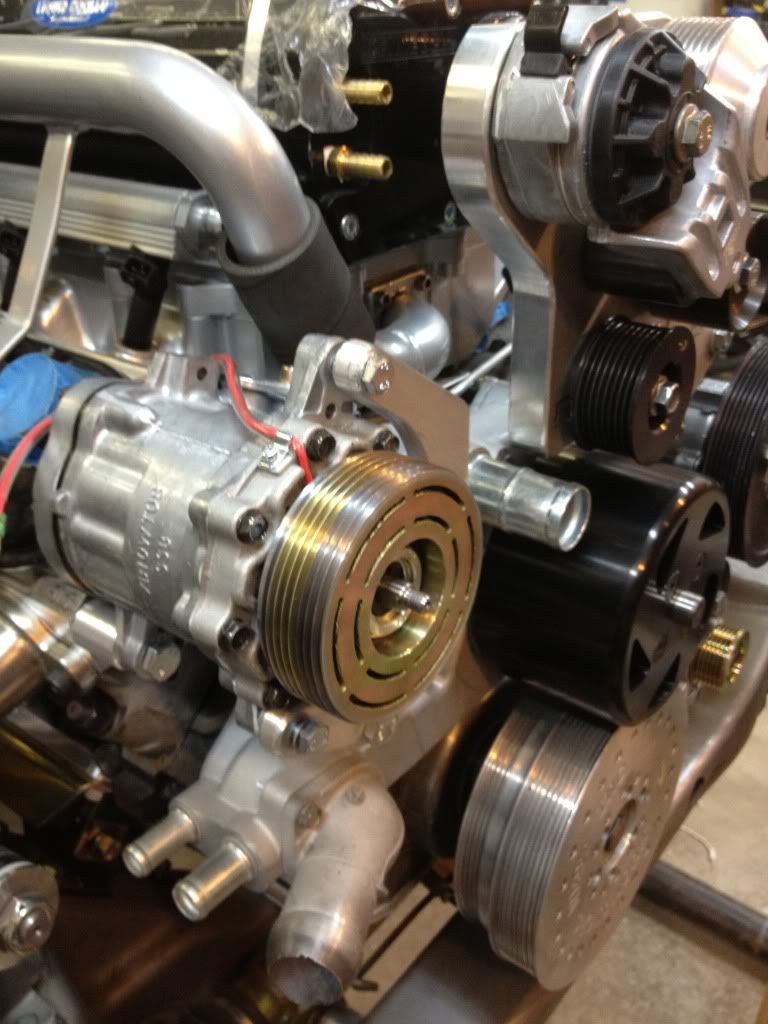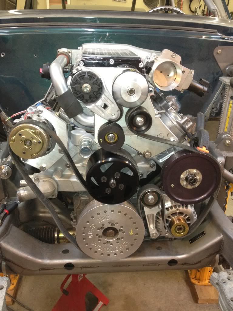 http://i300.photobucket.com/albums/n...a/DSCN0962.jpg So I searched the internet and went through numerous magazines with no luck. Then I found Turnkey engines and talked to Paul. He has been working on my set up for about 3 weeks now. Since I had the Truck snout on my SC (which is the same as the 2010 Camaro snout) we started off by trying to run 2010 Camaro accessories, but this would not work because the Low position of the Alt would hit the cross member on my DSE subframe . http://i300.photobucket.com/albums/n...l368ribkit.jpg So I had my SC at Kenne bell at the time for a liquid cool upgrade and had them change the snout to a Corvette snout (shorter). Now we are trying to fit the Corvette acc but it is turning out that he area between the fender panels are to narrow. http://i300.photobucket.com/albums/n...ova/kbturn.jpg I am at a loss now not only with my situation but my wallet. I really need some kind of help to get me back on track. I there is any shop or vender that can help please let me know! |