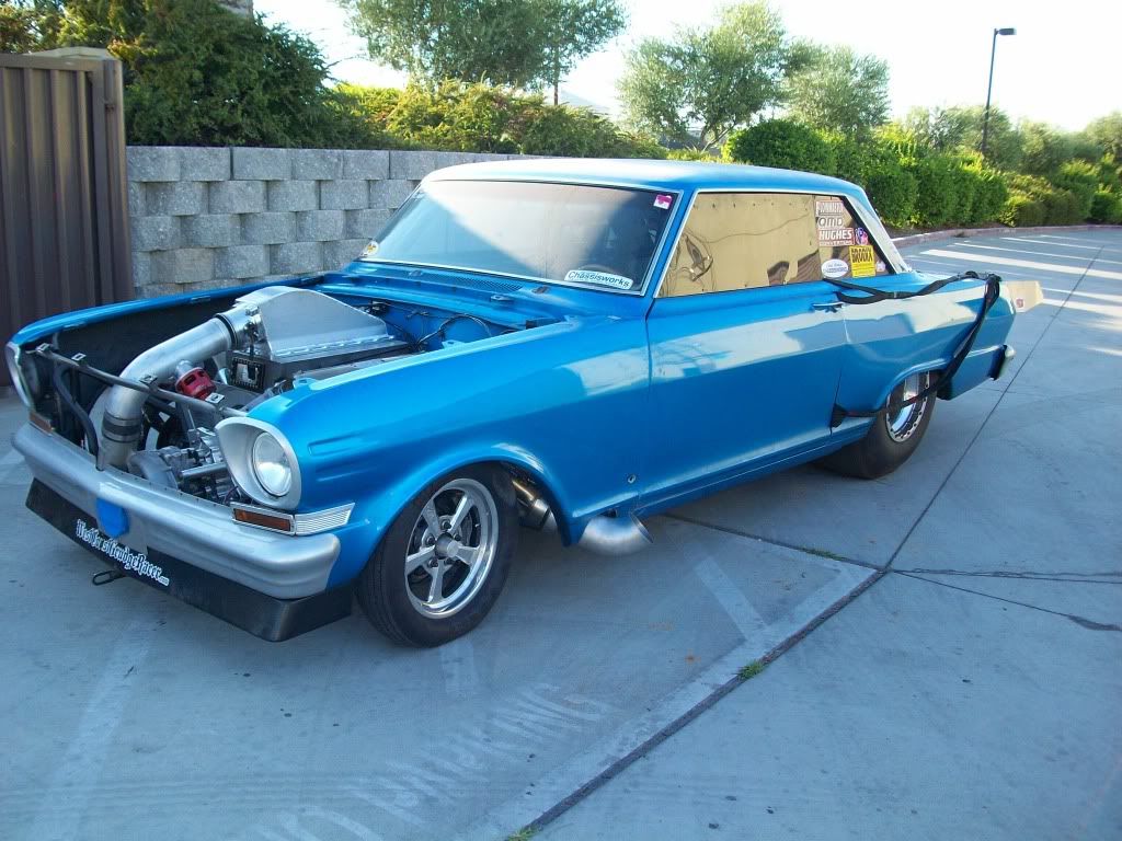 Jr. came to me for a set of stainless headers and some intake manifold duties. He dumped the BBC, but not before becoming the first Vortech blown car in the 6's and first to go over 202 mph(6.712@212mph). Now, it will be powered by a Miner Bros Hemi and the same Vortech blower. This thing is going to be an animal. We should see some more record breaking runs out of this little Nova soon.
