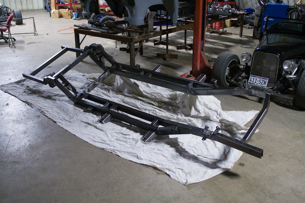 So I've been working with cooler and cooler technology and I've come up with an idea to convert my 55-57 frame for the guys who want to do it at home. A completely new frame for the 55-57's that takes the C4 corvette suspension front and rear that a guy with decent skills could build in his garage at home. It comes in a few UPS boxes, in a pile of parts and its all pegged and slotted tubing and flat steel cut on a CNC laser. So all a normal guy would need is 3x F clamps, a 2' x 5' flat table to clamp to, measuring tape, decent welding equipment and the knowledge to use it. And I'll do a full set of videos online so you can watch me showing how to do the frame with just the above mentioned tools. No huge frame jig and no super crazy measuring equipment needed.