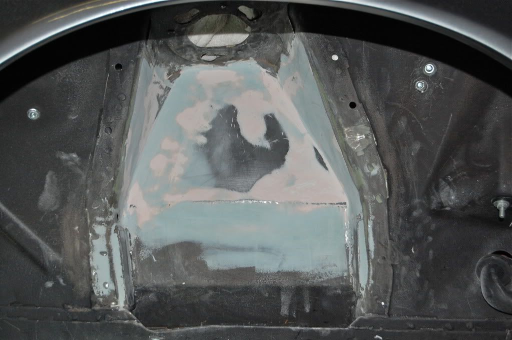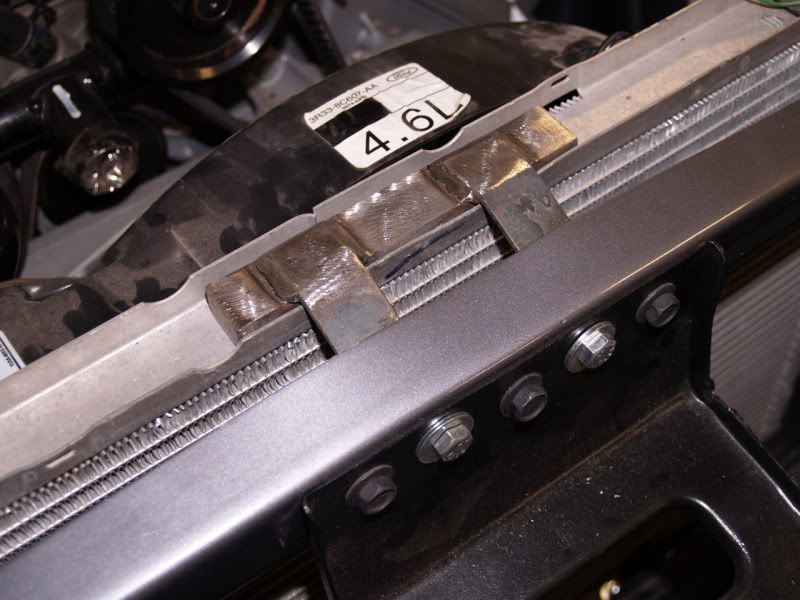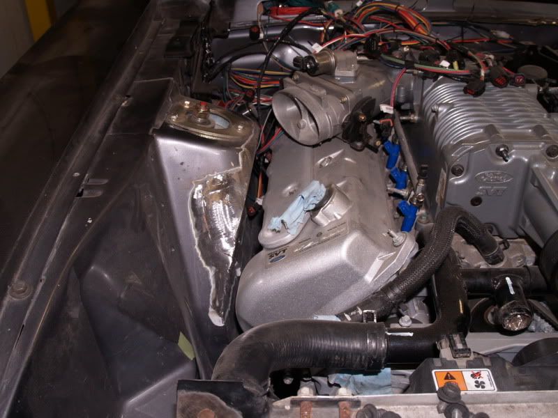 The welds were not finished on the towers, which was ok because the RRS system had to come back out to receive its new 400 lb springs anyway. The 275 pd springs that were installed are no match for the heavy 4.6L motor. Before. Note: I did not run those wires, but i got to rework them. They fell right out of the plug that connects to the coolant pump for the supercharger. Nice! http://i932.photobucket.com/albums/a...r/DSC_0369.jpg Another before http://i932.photobucket.com/albums/a...r/DSC_0370.jpg After Grinding http://i932.photobucket.com/albums/a...r/DSC_0397.jpg After two layers of bondo and lots of sanding. NOTE: dont ever try to use the BONDO brand they sell at your local auto parts store. I thought it would be ok for the shock towers, but the stuff was terrible. I went to the paint shop yesterday and purchased some Rage filler. http://i932.photobucket.com/albums/a...r/DSC_0482.jpg And finally, after respraying the entire wheel well aprons, and shock towers with new undercoating. http://i932.photobucket.com/albums/a...r/DSC_0486.jpg http://i932.photobucket.com/albums/a...r/DSC_0487.jpg |