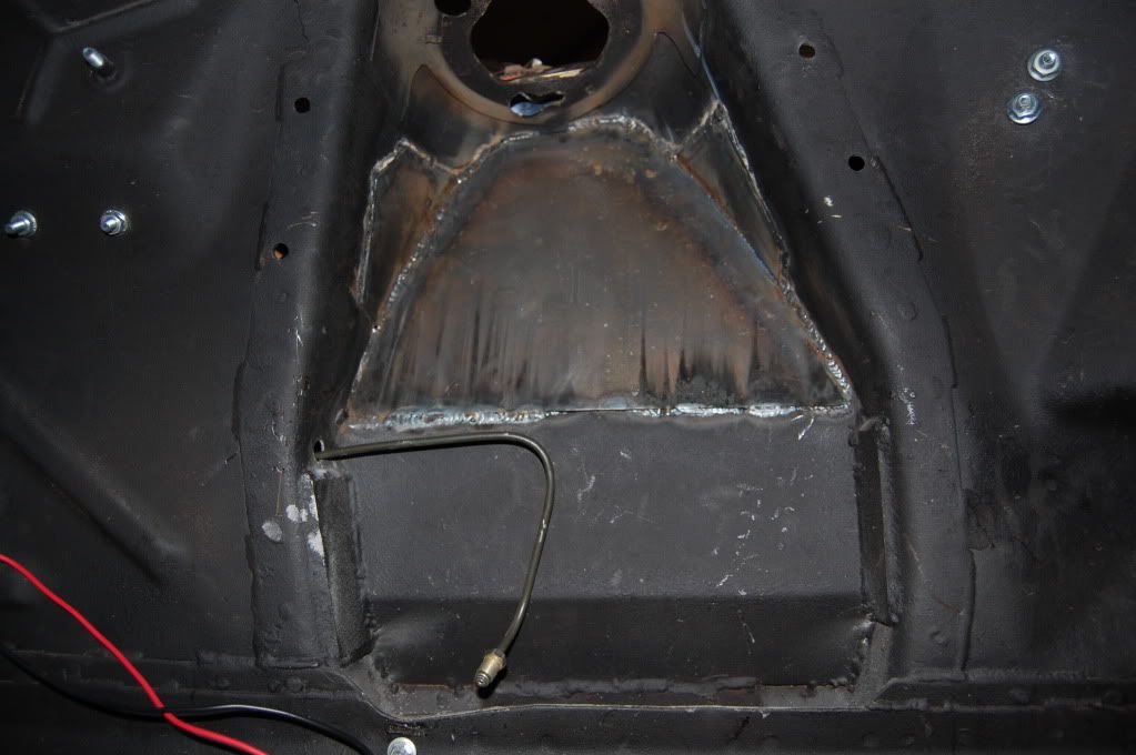 Before. The wires that were run through the brake line hole go the alternator. They were draped over the suspension and run under the frame rail. Very nice and not my work. The main feed wire to the back of the alternator was run next to the shorty headers, where it would have eventually either fallen into the header and burned up, or best case scenario, fatigued from heat over time. http://i932.photobucket.com/albums/a...r/DSC_0544.jpg After grinding down the welds and removing the MIG wire that was sticking out in several locations. http://i932.photobucket.com/albums/a...r/DSC_0547.jpg 5 skim coats of rage gold and tons of hand sanding later. http://i932.photobucket.com/albums/a...r/DSC_0551.jpg End result. http://i932.photobucket.com/albums/a...r/DSC_0555.jpg |