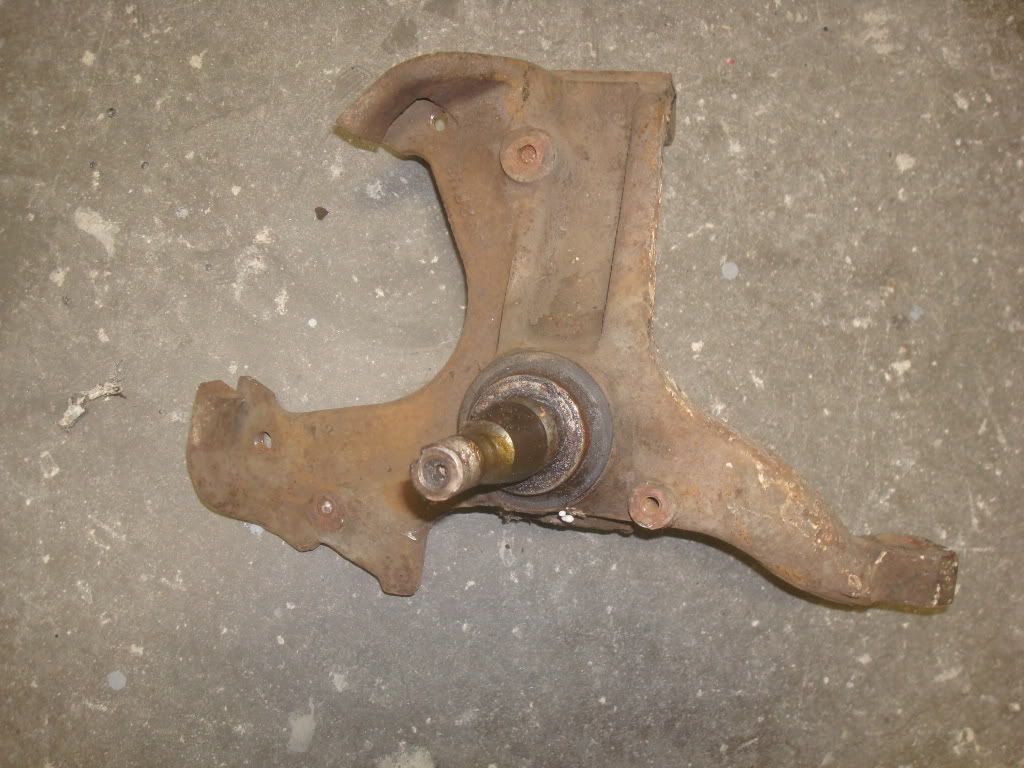 Well, the weather did not cooperate for my plans so I ended up getting the front brakes ready and cleaning more stuff out from the interior. The spindles were ebay specials and I guess I forgot to take a pic before we cut them. This is a dirty car!