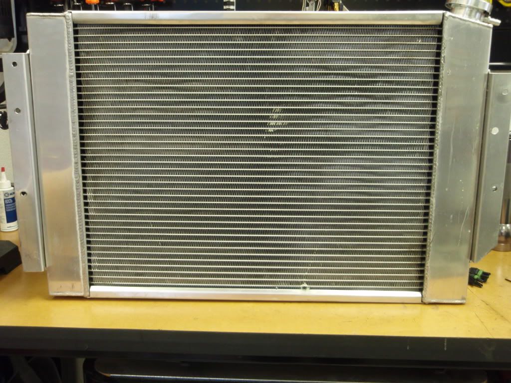 Here's the deal, I pulled the Jabroni deal of the century when I kissed it with a drill bit installing my oil cooler. I had it repaired by a local radiator shop with epoxy to make an autocross with my Father. It's water tight today but I replaced it because I don't want it to bite me down the road. How long it will last? I'm willing to sell it for the cost of the Spal fans to your door.(Including shipping in the lower 48) $350 http://www.spalusa.com/store/main.as...&item=30102029 http://i200.photobucket.com/albums/a...9/P3041197.jpg http://i200.photobucket.com/albums/a...9/P3041201.jpg |