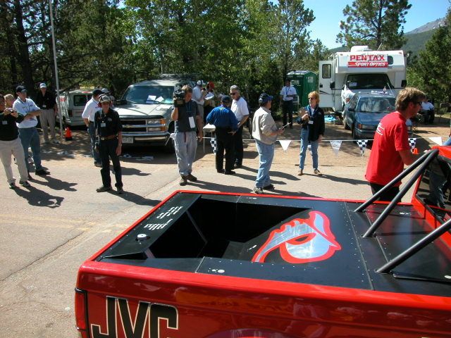 The hpt syclone also utilizes a similar design. A sheet metal wave helps to eliminate the cushion effect as air comes over the cab and guides it into the lower pressure zone behind the rad. The tailgate is then louvered to duct the air away. http://www.highperformancetrucks.com...g2_itemId=9288 http://www.highperformancetrucks.com...2_itemId=11254 If you set the engine back, lighten up the front end and reposition the fuel tank you'll be in a position where moving the rad isn't going to be that much more of a benefit imo. |