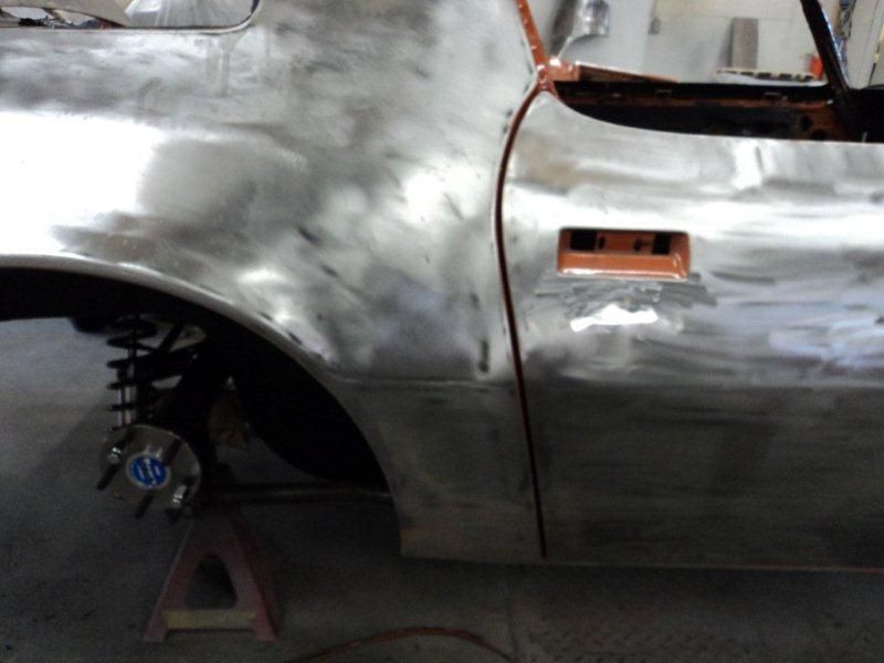 I tried talking Steve into keeping the original paint as it is not to bad :_paranoid This car was perfect Zero Rust. It has our New Second gen torque arm suspension in it. allong with the Street Fighter Front Subframe a 525 hp ls3 and t56. |