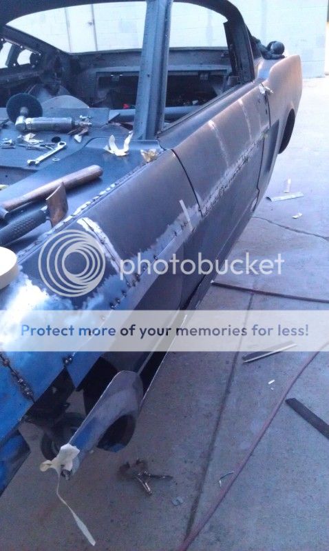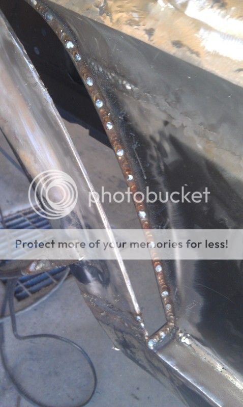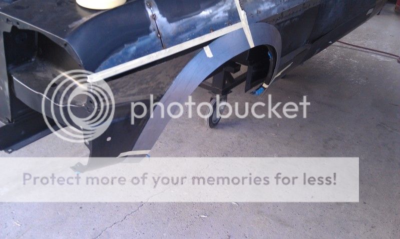 http://i366.photobucket.com/albums/o...A/IMAG0419.jpg http://i366.photobucket.com/albums/o...A/IMAG0519.jpg After doing this I decided to to start playing around with one of the quarters so that I could what one whole side of the car would look like. Off with the old! http://i366.photobucket.com/albums/o...A/IMAG0361.jpg I think I've said this before, but I really have no idea what I'm doing. I usually as the guys if I can try something, and they say "sure, go do it." These seemed like good places to make some cuts... http://i366.photobucket.com/albums/o...A/IMAG0367.jpg http://i366.photobucket.com/albums/o...A/IMAG0370.jpg I tech screwed the fender in place. I need to spend some serious time grinding and hammering before I put it on. Then again maybe I should just buy another and start fresh. My still very basic skills have come a long way since I started, and I probably spend more than half my time fixing everything I do, usually at least twice. The doors and fenders have been cut countless times now. Actually, I've lost count :willy: http://i366.photobucket.com/albums/o...A/IMAG0376.jpg Rolled out into the light, it still looks as ugly as ever. http://i366.photobucket.com/albums/o...A/IMAG0465.jpg |