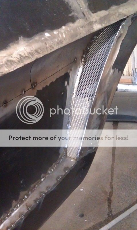 To maintain the location and the subtle, natural curve in the upper side body line elected to make a bunch of vertical cuts and pull everything out and up. Because the width increased from the door handle to the center of the wheel opening I was able to get by just adding in a a tapered strip, without ending up with a straight line. http://i366.photobucket.com/albums/o...A/IMAG0390.jpg http://i366.photobucket.com/albums/o...A/IMAG0339.jpg http://i366.photobucket.com/albums/o...A/IMAG0359.jpg I mocked up a fender flair on top of the stretch but ultimately decided it looked too tacked on. I want the design to flow and like something Ford could have done, rather than something aftermarket. With the upper part of the fenders and doors cut, I needed to bring the bottom out as well. To accomplish a little bit more of the "race car look" I decided to add fender vent behind the front wheels a la the Ferrari F40, Carrera GT, Viper, etc. Besides, doing this meant that I wouldn't have to stretch the middle of the doors :lol: To create the smooth curved transition I used a small slip roller. http://i366.photobucket.com/albums/o...A/IMAG0392.jpg To finish off the the opening I bent a little bit of round stock on the tubing bender. This was also done to add a little bit more strength just to insure nothing buckled, or bent excessively. http://i366.photobucket.com/albums/o...A/IMAG0474.jpg I couldn't help but toss in a little bit of mesh just to see what it would look like. http://i366.photobucket.com/albums/o...A/IMAG0399.jpg |