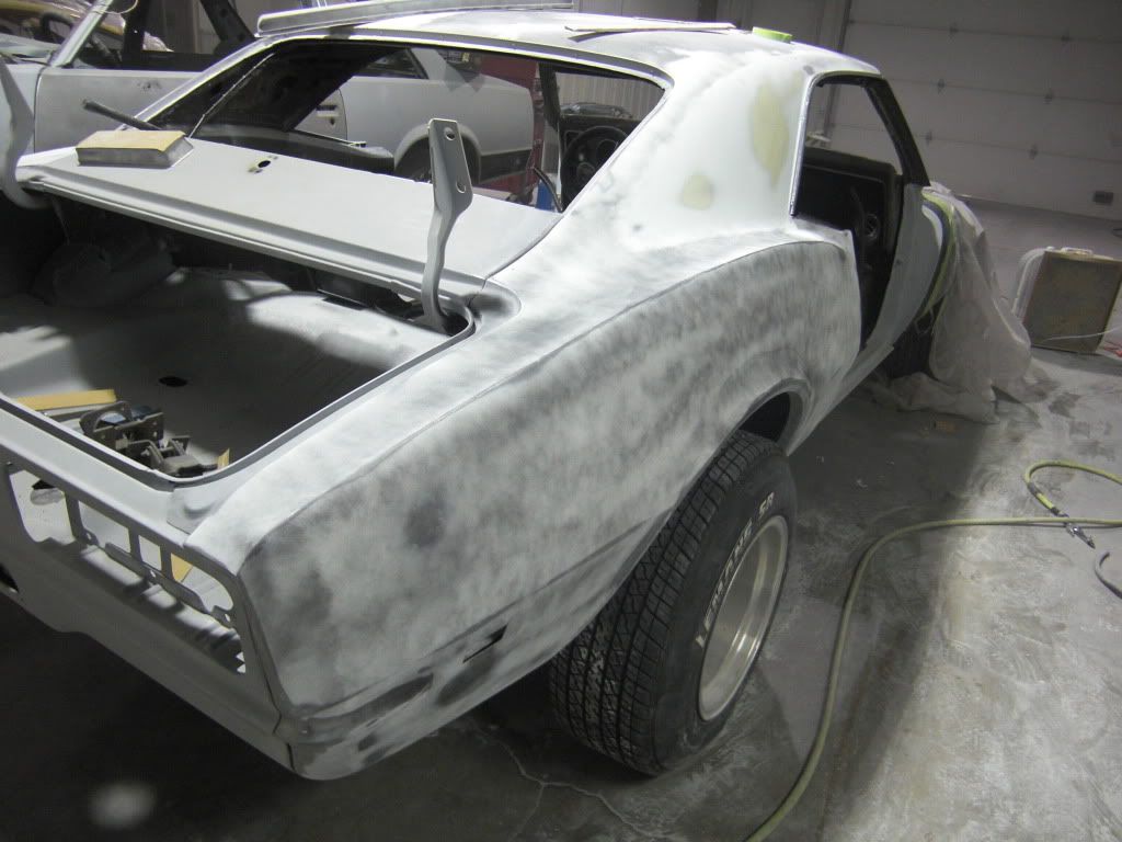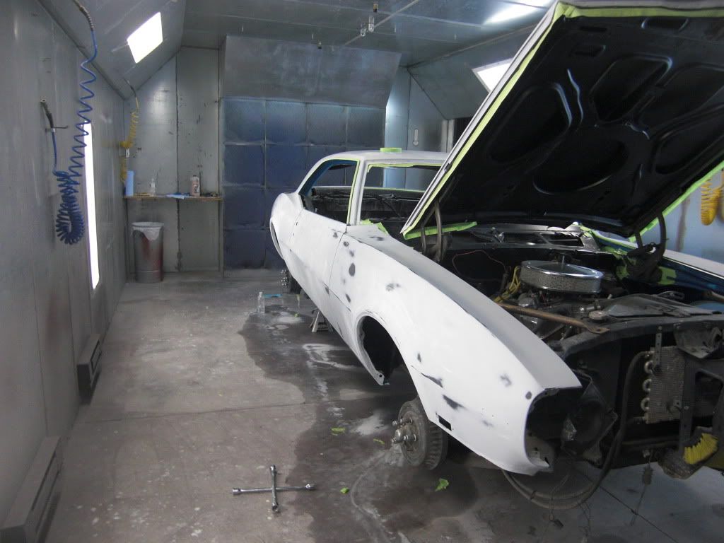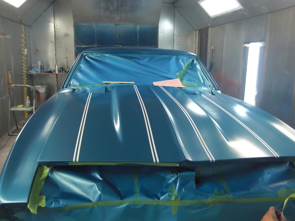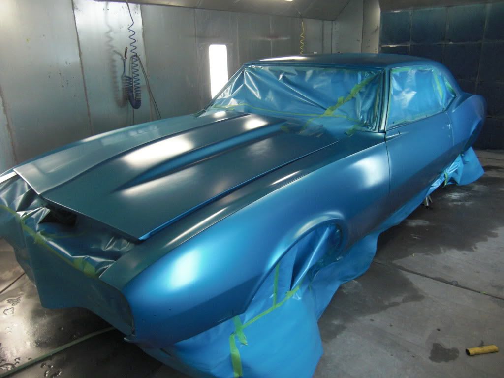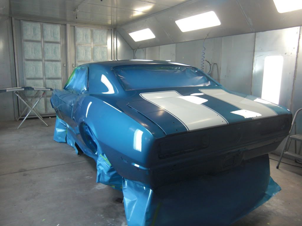 then for the paint... the owner wanted an original 68 gm color that was blue, he originally had a teal color and the only other one i saw for his camaro was fathom blue but at the last minute i found this. Lemans blue, used on 68 corvettes and z28s. the owner said yes and also wanted white racing stripes with it