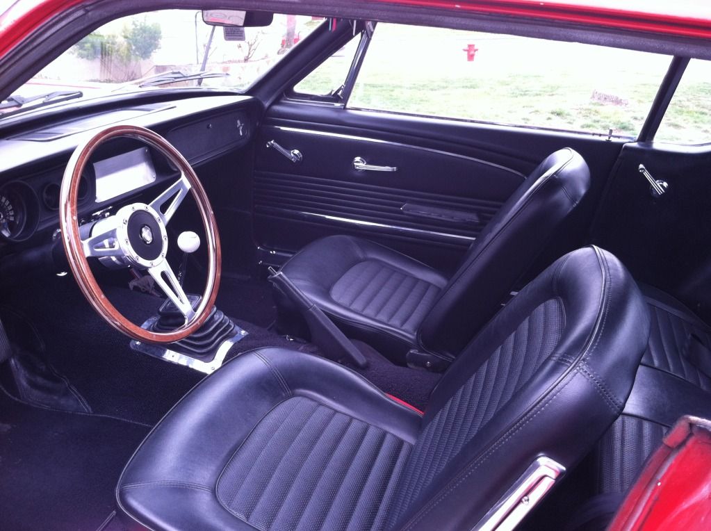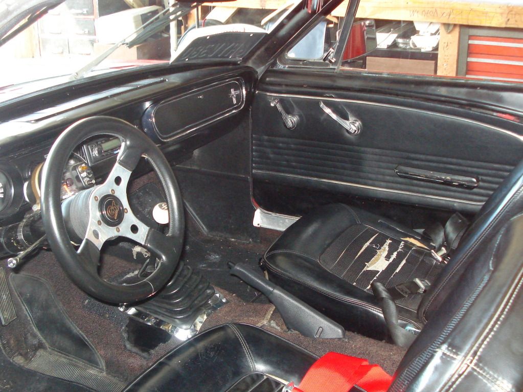 http://i1264.photobucket.com/albums/...2/18b2cdb3.jpg Pulled up all the carpet and replaced some rusted floor panels. http://i1264.photobucket.com/albums/...2/e0f7504d.jpg http://i1264.photobucket.com/albums/...2/8d38fb89.jpg The new interior, replaced seat foam, new seat covers, new carpet, steering wheel, sanded down the dash like some old shelbys had and painted the dash flat black, new door panels w/ new handles etc. and painted the area around the door panel. The guy who had it before me hacked up the old radio so i cut it out and made a radio delete. The guy who had it before me decided to put a new style emergency brake in as well. http://i1264.photobucket.com/albums/...2/35f5eb40.jpg |