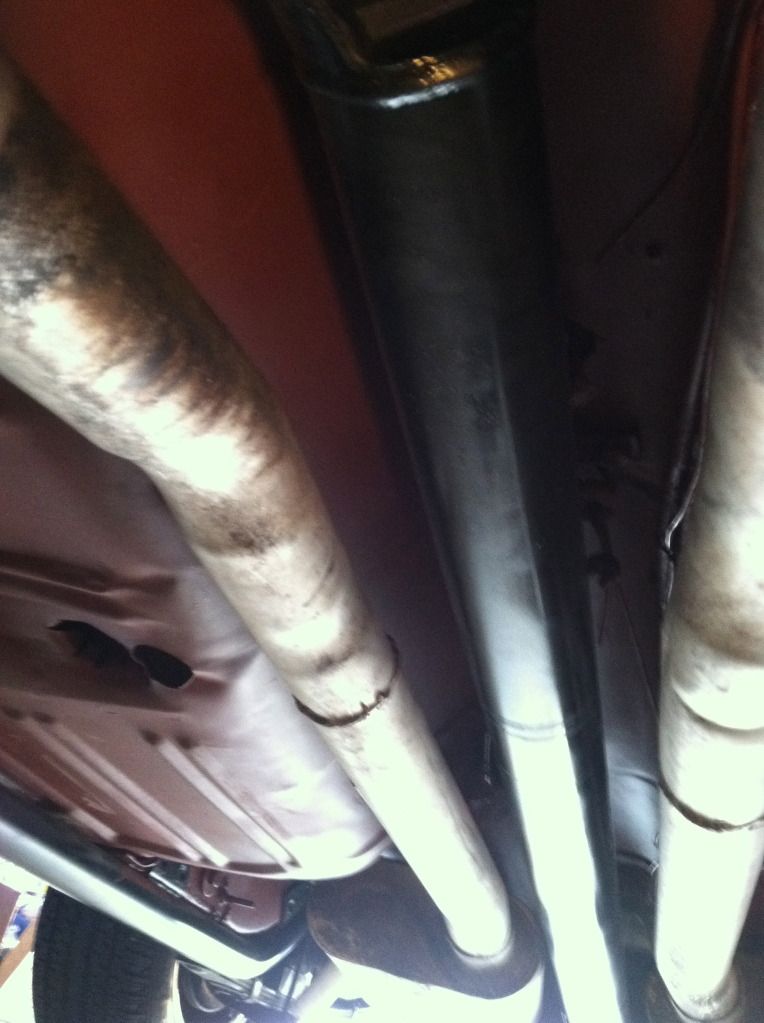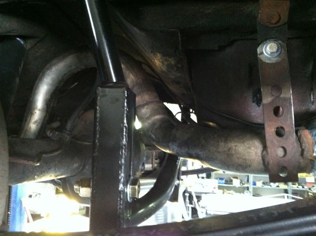 Awhile ago i put new rear suspension in. I put new leaf springs from Maier Racing and Bilstein shocks in as well as new spring plates and the car handled drastically better then it had before. Once I had the springs and shocks all dialed in a buddy of mine helped me put in a Panhard rod kit from Maiers as well. I didnt want to dump the exhaust because I have been told that it can be apian with the exhaust coming back into the car so we rerouted the exhaust around the Prod. The drivers side was not difficult to do but the passenger side took some time but once it was all in it looked and worked out really well. Tok us about 6 hours to do including all the exhaust work.