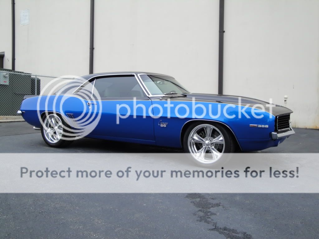 Here's a list of what is done to the car; 396 w/ 375 hp solid cam, roller rockers, performer rpm intake, 750 DP holley, be cool radiator with twin spal fans, Vintage Air front runner accessory drive 700 R4 built by Monster Moser 9" with 3.70 gears and tru trac Vintage Air, DSE selecta speed wiper kit, DSE electric headlight doors, DSE dash carrier with full Autometer ultra lite gauges, pioneer sound system with sirius satellite radio, power windows, power trunk release, DSE billet hood hinges. Agr quick ratio steering box, Heidts narrowed upper and lower control arms, Heidts coilovers on the front, DSE drop leafs in the rear, 18" Foose Nitrous II's, Baer brakes, and Michelin PS2's. Asking $40K or best offer I would consider a trade and cash on my part for the right 69 Camaro, it must be LS powered, 6-spd, a/c, and have a DSE sub frame, mini tubbed, and a quadra-link. link to more pics: http://s1009.photobucket.com/albums/...aro/?start=all http://i1009.photobucket.com/albums/...9camaro004.jpg http://i1009.photobucket.com/albums/...9camaro003.jpg http://i1009.photobucket.com/albums/...9camaro011.jpg |