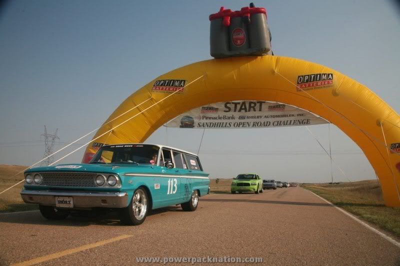 We ran 136mph in the half mile yesterday & we think we were within 3 seconds of a perfect run on the Open Road Race today (we will find out in a few hours). Here is a pic of us leaving our home town of DeSoto, KS. http://i48.photobucket.com/albums/f2...26339194_n.jpg Here is a pic of our camping spot in the middle of Arnold, NE at the Arnold motel & campground! lol http://i48.photobucket.com/albums/f2...27177183_n.jpg This one shows the start of the road where the SORC takes place. Lots of elevation changes & very curvy! http://i48.photobucket.com/albums/f2...173876_n-1.jpg Here is one of Optima, NHRA, Top Fuel driver, David Grubnic riding in our Fairlane wagon! He is a very cool guy, LOTS of fun to be around! http://i48.photobucket.com/albums/f2...47843210_n.jpg This is the start of the open road race. http://i48.photobucket.com/albums/f2...17450109_n.jpg This is one of the coolest things I have ever done in a car!!! I cant thank the guys from Optima, Bret Voelkel, & all the folks from RideTech enough for this experience. It was truly amazing! |