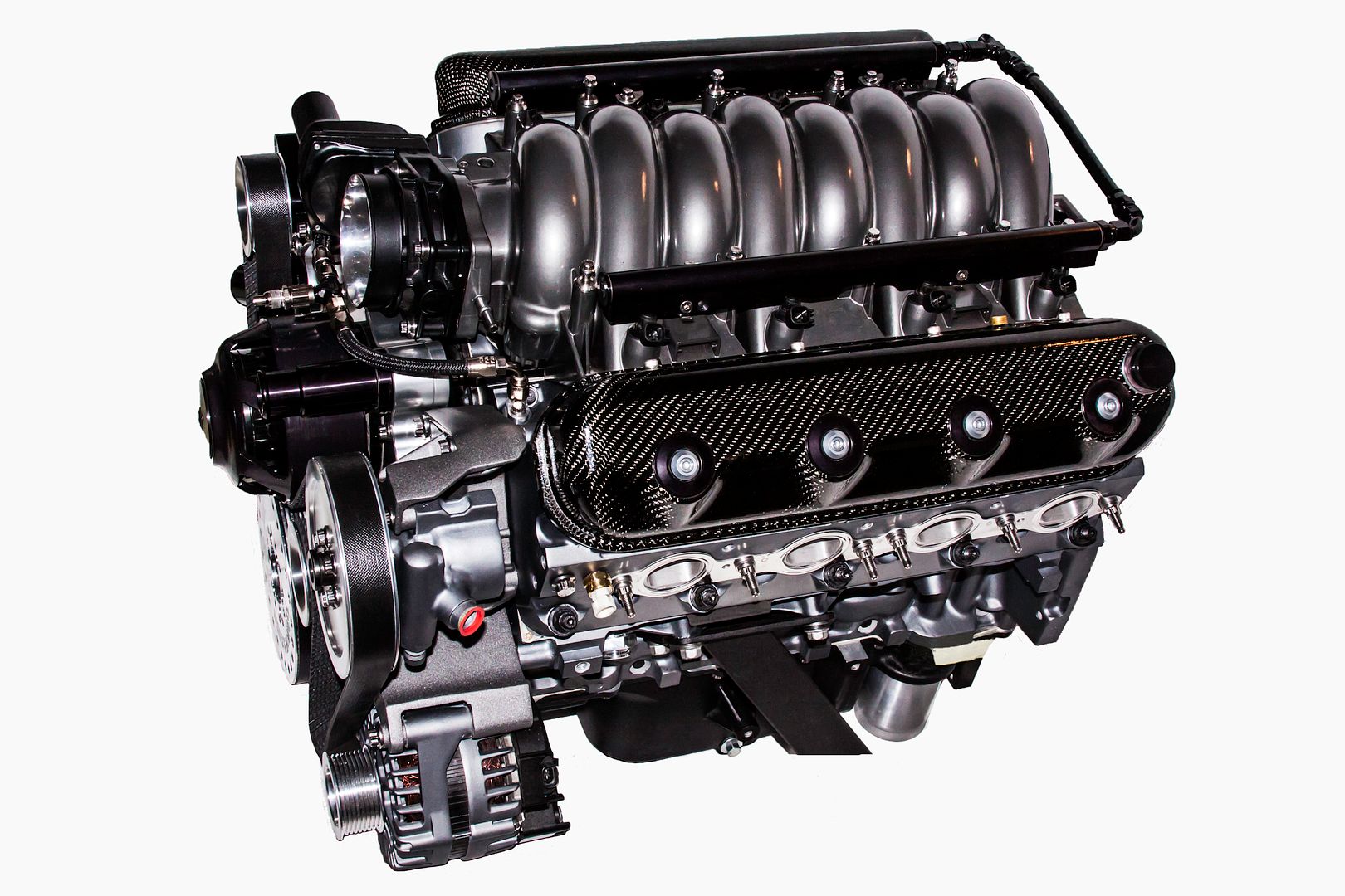 So I figured we add pictures of the car also. http://i1231.photobucket.com/albums/...ps6f53755e.jpg Hey guys, though I'd post a few pics of my sons project. It's a Gen 5 Camaro SS hes been working on. On the performance side: It's been bored and stroked to a 418, 11.4.1 compression, heads massage by Lingefelter, GT11 Lingenfelter cam, CP pistons, Lunati crank and rods, Meizire Electric water pump, Innovators West 8 rid front drive, Turn One power Steering pump, Every freakin bolt inside and out has been replaced with ARP, Pure power billet oil filter, Katech tensioner, Improved Raving valley baffle, ported intake and throttle body, etc, etc... On the attention to detail: The entire block, both inside and out along with the cylinder heads have been completely grounded smooth. All the accessories front drive brackets and the motor mounts were completed sanded and powder coated in "Anthracite". The oil pan, valley tray and timing chain cover powder coated in texture black. The thermostat housing powder coated onxy, intake in a gun metal gray. The block, heads, alternator, ac compressor, power steering pump all sanded down of any casting and painted BMW "Frozen" gray It's a gun metal gray with flat clear). All the pulleys were given a brush finish. Ring Brother washer for the intake bolts and throttle body, Lokar dip stick, etc, etc ...... There is a lot more but you get the idea. Here's a couple of pics: http://i1231.photobucket.com/albums/...1295-Edit2.jpg http://i1231.photobucket.com/albums/..._1304-Edit.jpg After relocating the factory EVAC solenoid and negative battery cable that mounted to the front of the cylinder head, the 4 factory bolt holes on the were no longer needed, so they were welded in and the face re-milled. http://i1231.photobucket.com/albums/...7319/028-6.jpg The factory vapor tube was replace with XRP AN lines and fittings. |