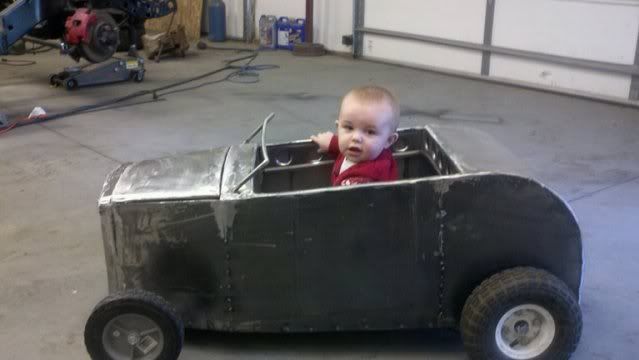finished the cowl,added some flair to the inside,added a windshield frame. http://i15.photobucket.com/albums/a3...C12AD-orig.jpg Finally got the hood done and working. http://i15.photobucket.com/albums/a3...58B31-orig.jpg grille shell started http://i15.photobucket.com/albums/a3...2B61C-orig.jpg heres my 11yr old sitting in it for reference. http://i15.photobucket.com/albums/a3...DF399-orig.jpg But I think SpongeBob knows how to cruise in it :rofl: http://i15.photobucket.com/albums/a3...B0BAE-orig.jpg Still have some more welding and lots of grinding on it, then body work. And I'm still looking for something better for the front wheels. |