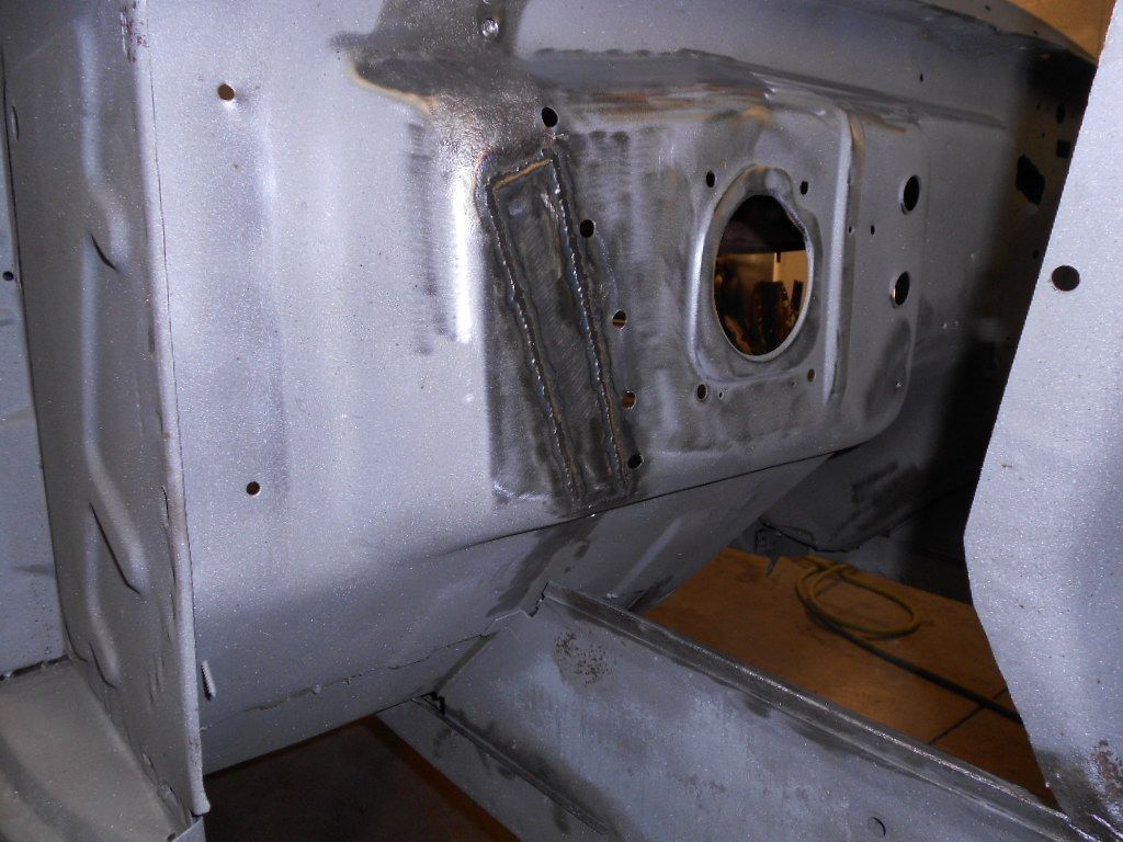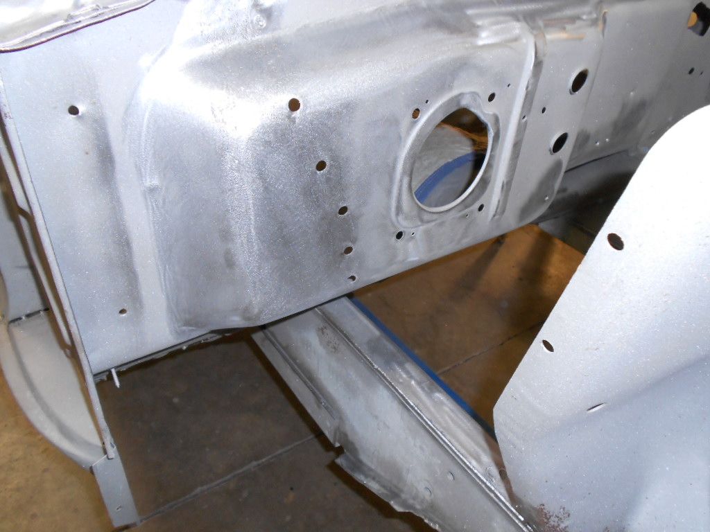 The front crossmember had been hit so we replaced it http://img.photobucket.com/albums/v3...Mustang/31.jpg Before we installed the new one Brian cleaned up the surface rust than brushed a coat of SPI epoxy http://img.photobucket.com/albums/v3...Mustang/34.jpg http://img.photobucket.com/albums/v3...Mustang/36.jpg The left front apron has a little rust so Brian cut it out http://img.photobucket.com/albums/v3...Mustang/38.jpg http://img.photobucket.com/albums/v3...Mustang/39.jpg http://img.photobucket.com/albums/v3...Mustang/41.jpg There was also a little rust on the firewall. After drilling out the spot welds on the fender apron Brian patched it. http://img.photobucket.com/albums/v3...Mustang/42.jpg http://img.photobucket.com/albums/v3...Mustang/43.jpg http://img.photobucket.com/albums/v3...Mustang/44.jpg http://img.photobucket.com/albums/v3...Mustang/45.jpg |