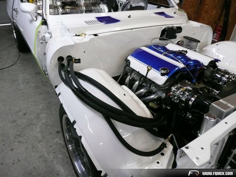 This is not my car but it is what I will be doing. My brother in law used black grommets and has had no issues/kinking. System works fine. Cheaper way to go, uses less fittings. If you havent ordered the kit yet just get it with longer hoses so you can keep the hoses hidden all the way up to the core support area.