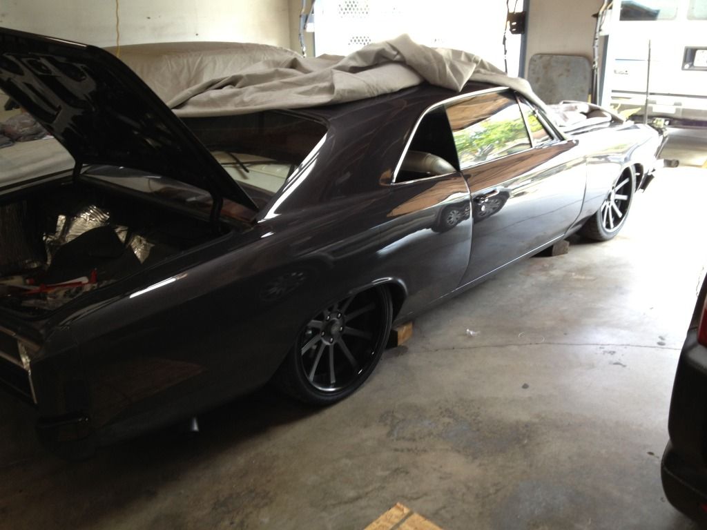 Yesterday I started working on the trunk of my Chevelle. I'm redoing the air tank/compressor for the bags. Pic's to come of this. However because I was removing the air tank, I went ahead and laid the car out. Before I did, I put some 4x6 blocks under the frame for it to rest on. http://i157.photobucket.com/albums/t...e/IMG_1630.jpg http://i157.photobucket.com/albums/t...e/IMG_1631.jpg http://i157.photobucket.com/albums/t...e/IMG_1636.jpg http://i157.photobucket.com/albums/t...e/IMG_1635.jpg Then I thought, man, that's a sweet ride height....wonder why I couldn't drive this low? I looked under and the headers are about 1/2" from the ground. The other thing is the front cross member. Then I got to thinking....what if I cut out the front cross member and welded in a big thick steel plate to take its place? I could easily gain a few inches of clearance doing this. Different headers, raise the engine a bit, new front cross member, and bam....low low low. http://i157.photobucket.com/albums/t...e/IMG_1634.jpg http://i157.photobucket.com/albums/t...e/IMG_1633.jpg http://i157.photobucket.com/albums/t...e/IMG_1632.jpg Anybody ever thought anything crazy like that before? Or done something like that? I could be completely crazy, but the thought sounded good in my head. All of voices agreed. :D |