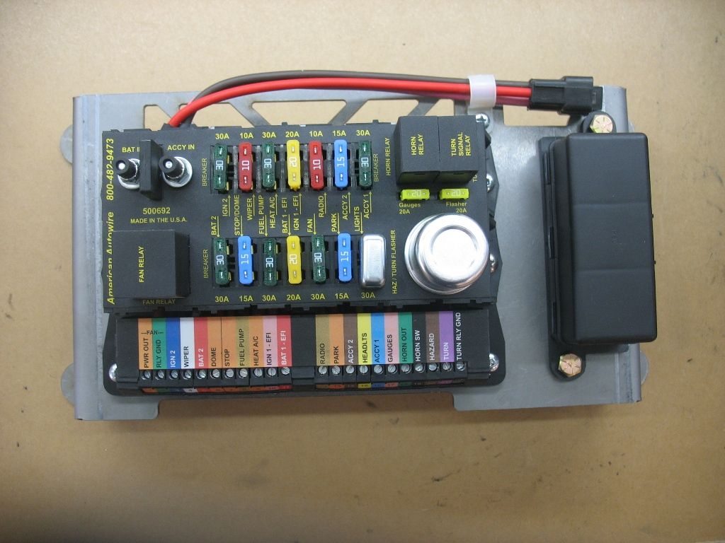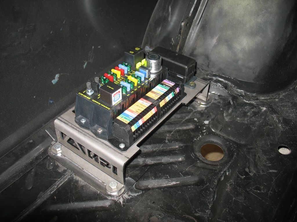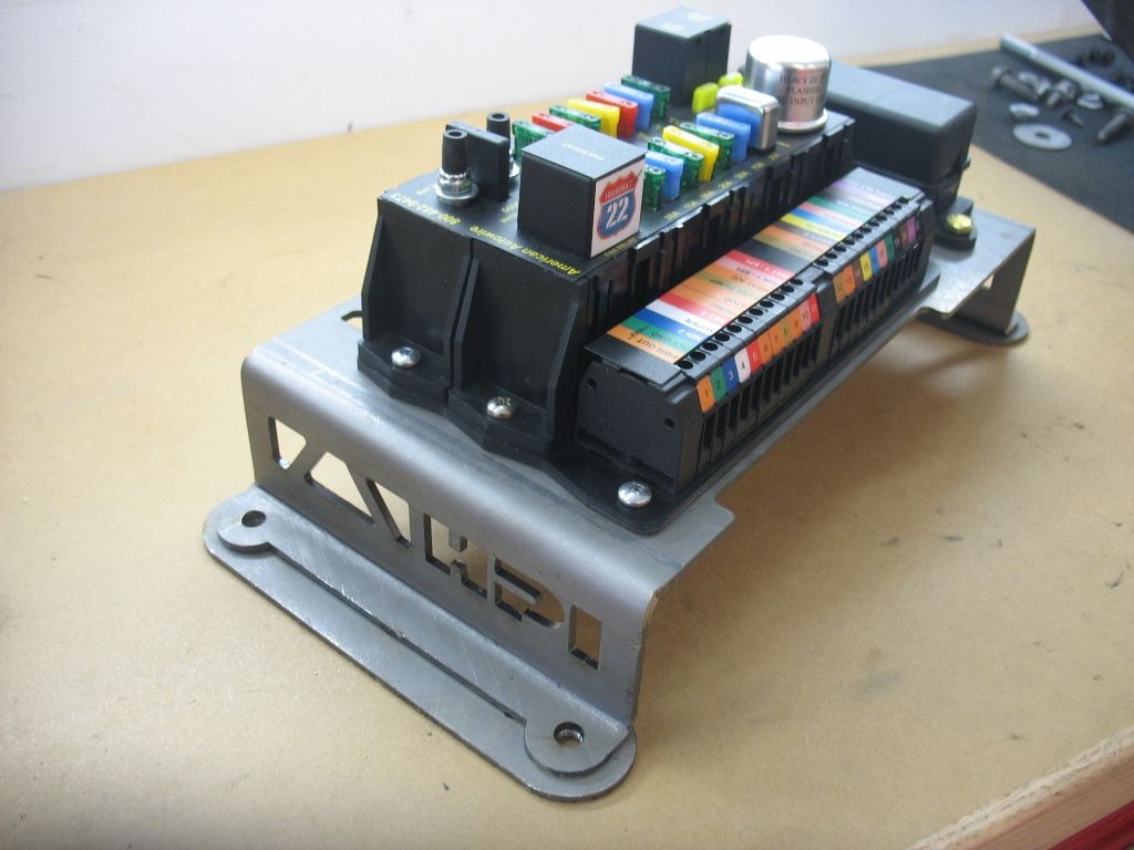 This is our American Autowire Highway 22 fuse panel and maxi fuse mounting system. This gives you a nice, organized mount for your fuse panel, providing you with nice wire routing, integrated ground point, wire clamping point, and maxi fuse mount to put your harness anywhere! We have three cars in the shop using these mounts in various ways, so I will get some more sample shots soon. Includes threaded weld-on mounting plates. We can offer this without our logo as well. Comes with hardware. Price is $70 http://i1204.photobucket.com/albums/...psa5dbe38c.jpg http://i1204.photobucket.com/albums/...ps16ab7a00.jpg http://i1204.photobucket.com/albums/...ps9c5406e9.jpg http://i1204.photobucket.com/albums/...ps55888749.jpg http://i1204.photobucket.com/albums/...psd9567403.jpg |