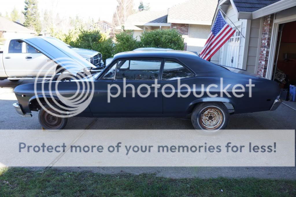 I've decided to part with my '69 Nova I've been working on. I found this car as a legit barn find in northern California about an hour from my home. I knew as soon as I saw it, it was a perfect candidate for a build. It hasn't been on the road since 1983/84 and was very solid. It's a roller so no engine or trans. The car comes with almost a full set of trim and all of the glass except for the windshield. The window regulators are in excellent shape and fully functional. The glass is not cracked or delaminated. No front seat, but the rear bench is intact. The dash cluster is dirty but complete and has the controls for the heat/vents. The doors are extremely solid and have zero delfection in the hinges whatsoever. Other than shopping cart dents and door dings, the body is in original shape and currently in dark gray sealer after have been stripped with 120 grit. There is zero evidence or any noteworthy collision as the doors, hood, and trunk all retain crisp, original gaps. They all open and close perfectly. The hood gaps and latch are perfect. While there are many simple dents, the car will not require and further panel replacement and most importantly has NEVER had any bodywork or filler applied to it. What you see is exactly what is there. I have completed the following metal work: New Goodmark full floor pans New Goodmark rear tail lamp panel (original was cut for custom lamps-yeah) New Goodmark right, lower quarter panel patch New Goodmark upper dash panel at cowl Left quarter patched over wheel arch (had two small bubbles) -rt front inner fenderwell has typical battery damage. Needs replaced. All panels have been etched primed at the seams and seam sealed with Kent 6000 products. The car is now completely rust free other than a small spot on the front edge of the hood and the rt fenderwell (batter acid damage). I had planned on a Goodmark hood to replace it. The trunk floor has some minimal discoloration and some minor pitting, but does not justify a pan replacement. The roof had some small spots where corrosion had begun, but will not require anything more than metal to metal to make prefect. The car is originally a V8/auto/10 bolt car. The 8.2 10 bolt is still there as well as the multi leafs. A clear CA title in my name is on the way from DMV. All fees are paid. The subframe in the car is in perfect shape. It doesn't have any scars from being towed or damaged. I don't think it's ever left the body. The car steers and rolls on 4 good rollers. It's the perfect builder to take from here. The dirty work is done. It's ready for body and paint! $3900 with title and a pile of extra parts. Dave 916-300-09nine nine Sacramento, CA Bonus!- Check out that legit, vintage pro touring front wing! I'll throw it in! http://i394.photobucket.com/albums/p...psaaf38465.jpg http://i394.photobucket.com/albums/p...psca04ea57.jpg http://i394.photobucket.com/albums/p...psfba230ac.jpg http://i394.photobucket.com/albums/p...psc18c2b32.jpg http://i394.photobucket.com/albums/p...pseb1efd84.jpg http://i394.photobucket.com/albums/p...ps7b45b242.jpg http://i394.photobucket.com/albums/p...ps8333ccd8.jpg http://i394.photobucket.com/albums/p...psd97977ec.jpg http://i394.photobucket.com/albums/p...ps774b63fe.jpg http://i394.photobucket.com/albums/p...ps23a08f3a.jpg http://i394.photobucket.com/albums/p...ps14757666.jpg http://i394.photobucket.com/albums/p...psc39873dd.jpg |