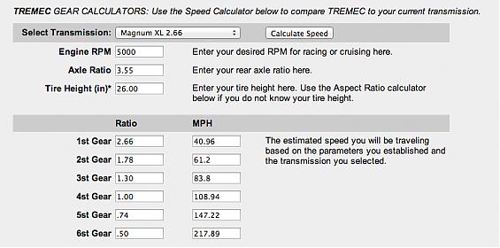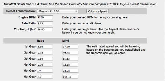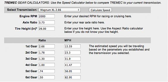 1st 2nd 3rd 4th 5th 6th Rev 2.66:1 1.78:1 1.30:1 1.00:1 0.74:1 0.50:1 2.90:1 I'm running the Michelin Pilot Super Sports: 295/30/19 @ 26" Using the Tremec calculator @ 2000rpm, 3500rpm, & 5000rpm I get the following speeds. The variation at my power band is only 5 - 7mph My goal is to have improved hookup for the auto-x, and stronger pull in the 4th / 5th gear for the high speed track events. I'd appreciate your thoughts.... Attachment 40970 Attachment 40973 Attachment 40971 Attachment 40974 Attachment 40972 Attachment 40975 |