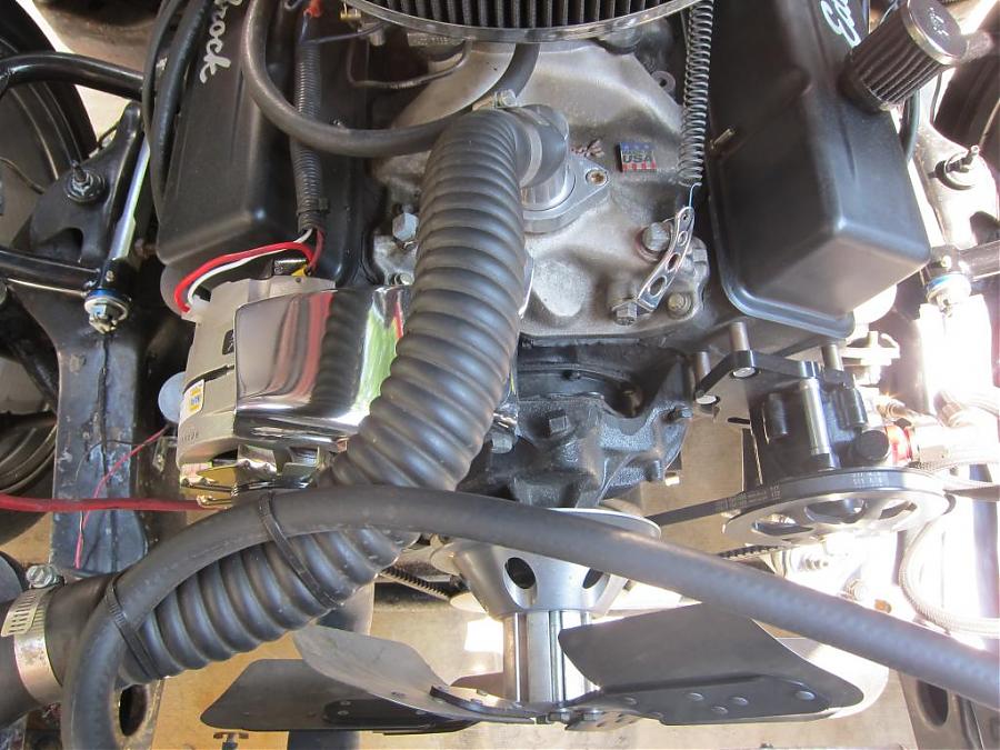 Hey guys, I'm in the midst of a vintage air install on my Chevelle. Due to my late '70s pulley setup (alt pass side high, A/C compressor pass side low, KRC P/S pump drivers side) I'm having issues with my water pump exit.
