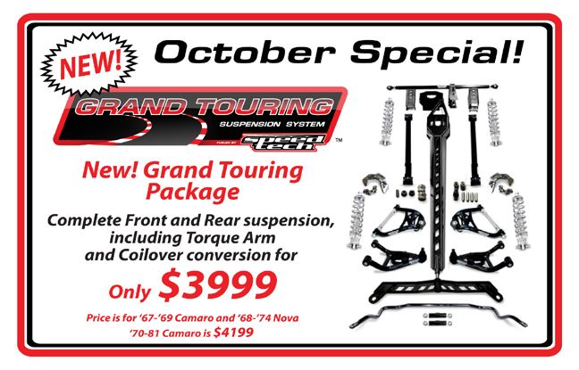 Just wanted to pass the word, we've put together a new affordable Made in the USA suspension package for 67-81 Camaros and 68-74 Novas that really works! To celebrate it's launch we've got it marked down on sale for the month of October. It's a great deal for front and rear suspension including a 4 wheel double adjustable coilover conversion. Check it out!