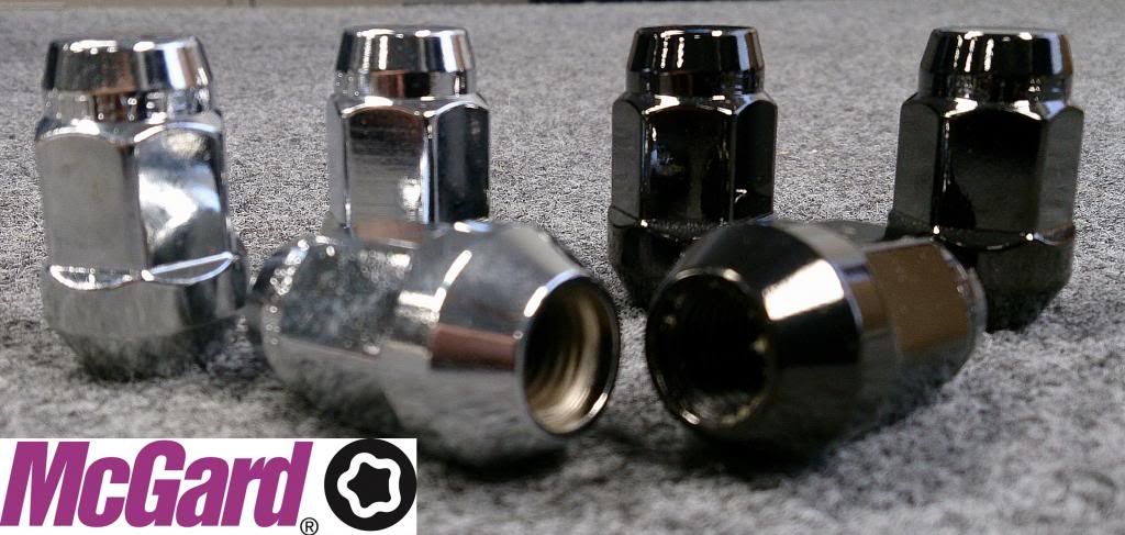 Here's a better description from the McGard website: "Chrome plated lug nuts lead a tough life. Think about it, harsh elements, nasty corrosive wheel cleaners and lead-foot drivers. Not to mention overzealous impact guns and loose fitting lug wrenches. This kind of treatment destroys ordinary lug nuts which turns even the best looking wheels ugly. Tough Nuts can take the punishment and keep your wheels looking beautiful. Tough Nuts are guaranteed for life not to rust, chip or peel. They are manufactured in the USA to meet or exceed O.E.M. standards for safety and durability. Every lug nut is fully machined from restricted chemistry steel made specifically for McGard and through-hardened for its unsurpassed level of safety. McGard's plating process includes three layers of nickel and one layer of microporous chrome/black producing a superior finish while protecting against rust. Tough Nuts are designed and built for the real world, because life is tough. Bulge Style Cone Seat lug nuts have an extended seating surface that is designed to match the wider seating surface used on some aluminum wheels. For use with steel or aluminum wheels with exposed decorative lug nuts that are tapered at the bottom." We also have open end lug nuts in a variety of styles and can assist in special custom applications for studs and nuts as well. :flag2: http://i1216.photobucket.com/albums/...ps3471fe3c.jpg |
