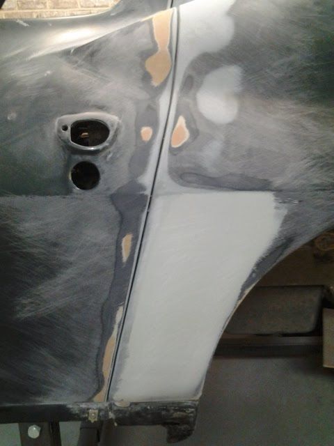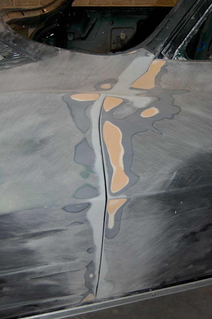 http://i852.photobucket.com/albums/a...ps15d16228.jpg http://i852.photobucket.com/albums/a...psa4cc1134.jpg The door had dipped down at the rear corner and sat lower than the body. It wasn't terrible, but it needed to be addressed. http://i852.photobucket.com/albums/a...pse8872b1e.jpg http://i852.photobucket.com/albums/a...ps4eab7b6a.jpg Front of door Before http://i852.photobucket.com/albums/a...ps3889880d.jpg Front of door After. I will need to remove the door to finish smoothing things out. http://i852.photobucket.com/albums/a...ps9ae0fdad.jpg Still a good bit of filling and smoothing to do on the passenger door, but the gap is already nice and tight after building up the jamb with evercoat vette panel filler. http://i852.photobucket.com/albums/a...psac0c0a0f.jpg |