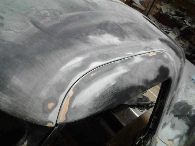 I really did not want to get this far into bodywork, but the door gaps on this car were massive at the front and rear and I just couldn't leave them that way. Before http://i852.photobucket.com/albums/a...ps83e2cc4c.jpg After, which ended up being too tight. http://i852.photobucket.com/albums/a...psbc93a629.jpg http://i852.photobucket.com/albums/a...psa77210d4.jpg Smoothing out the firewall took a lot longer than i initially thought it would. http://i852.photobucket.com/albums/a...ps3dad36ca.jpg The hood finally was finished by shermersheim and arrived. Bolting it on made me realize that the hood surround is wavy from previous bodywork. http://i852.photobucket.com/albums/a...ps8b94b0f5.jpg http://i852.photobucket.com/albums/a...psb68fe141.jpg |
