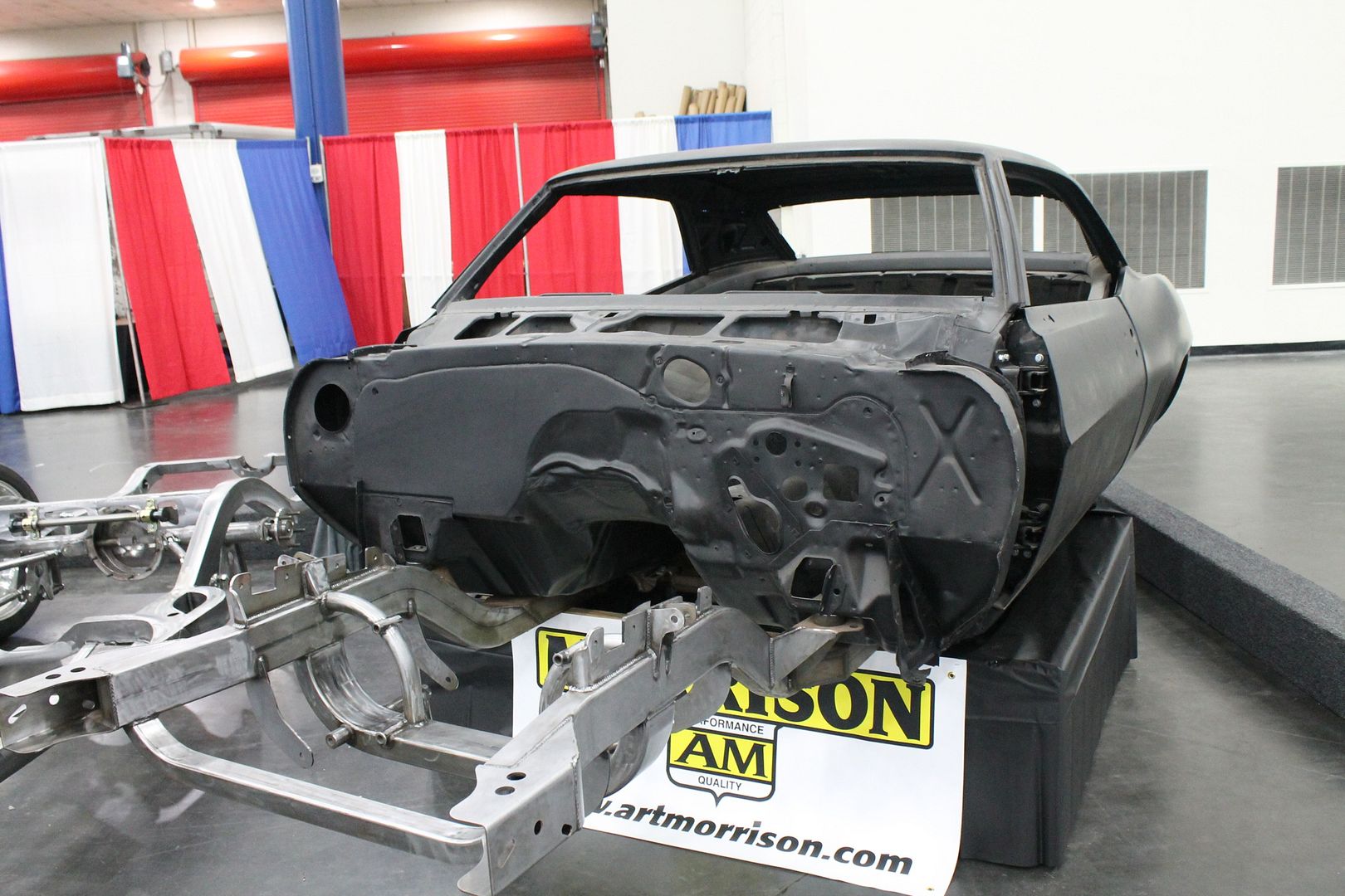 Once we had the new rails under it, we replaced both quarter panels and fit a new trunk lid on it. Then installed the Detroit Speed Firewall panel. - Here it is on display at the Houston Autorama