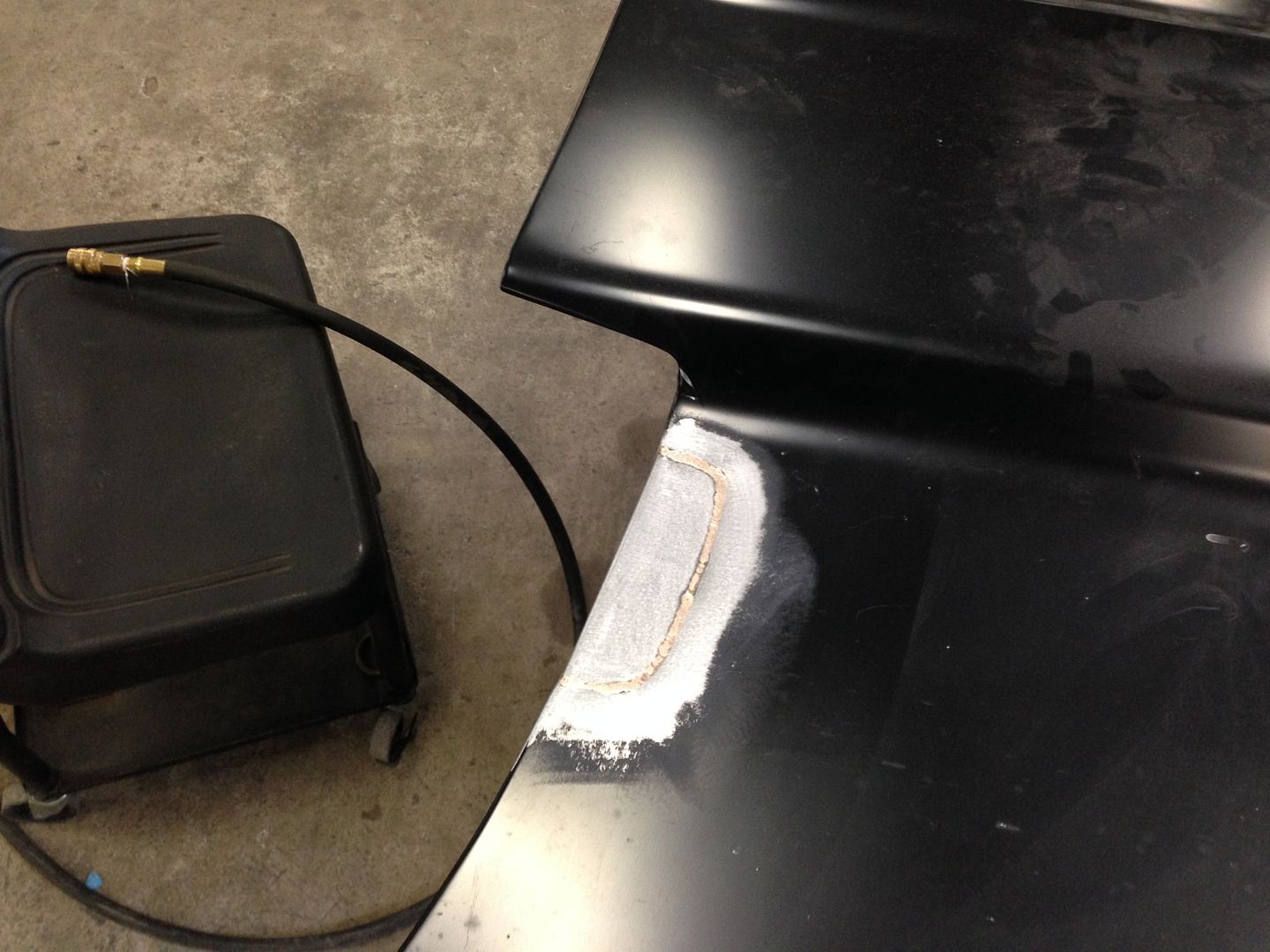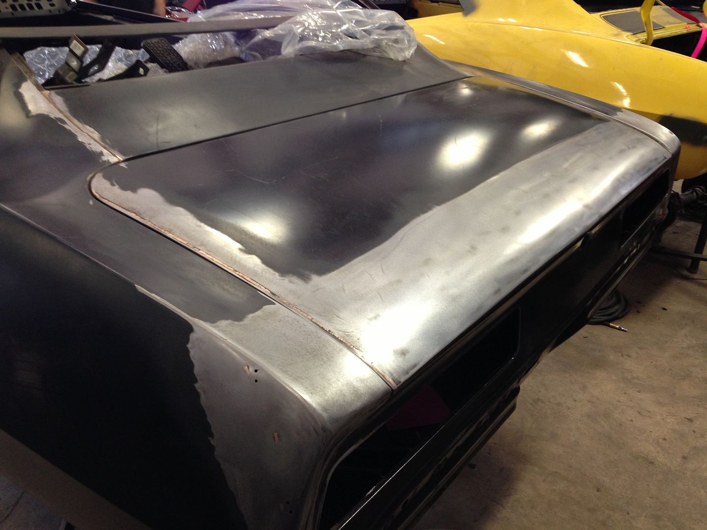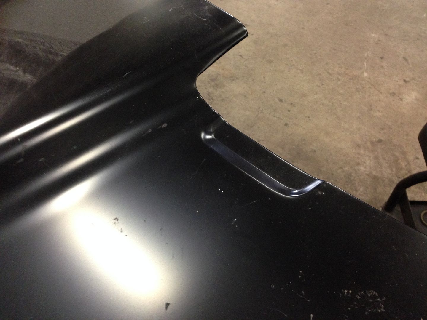 Time to get rid of the dip in the hood. The car will have a smooth wiper cowl with no vents