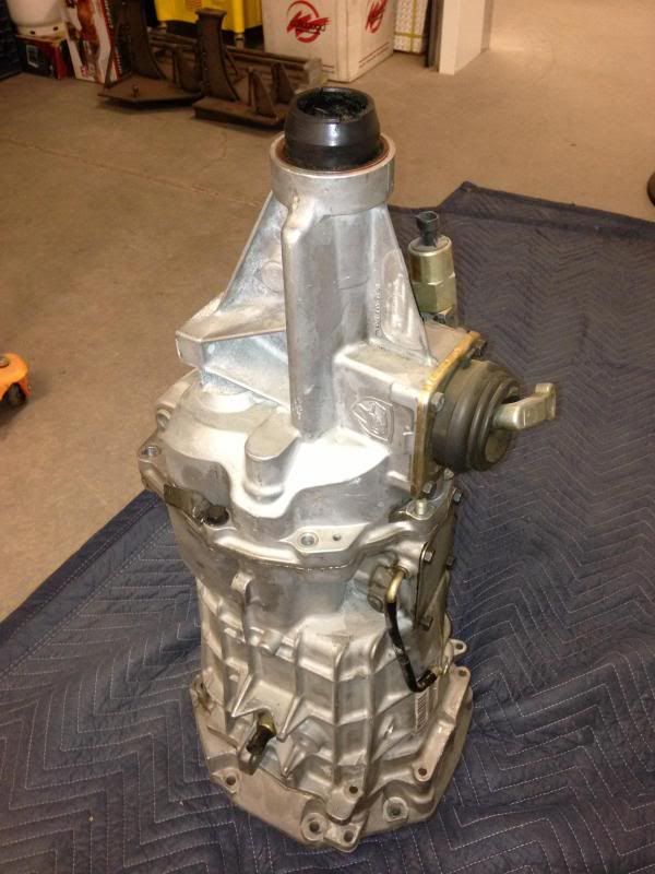 That's a Viper T56, which places the shifter significantly more toward the front than an LS1 transmission, and places the cross-member mount about 1" to 1.5" farther from the centerline of the output shaft than does an LS1 or Magnum T56.