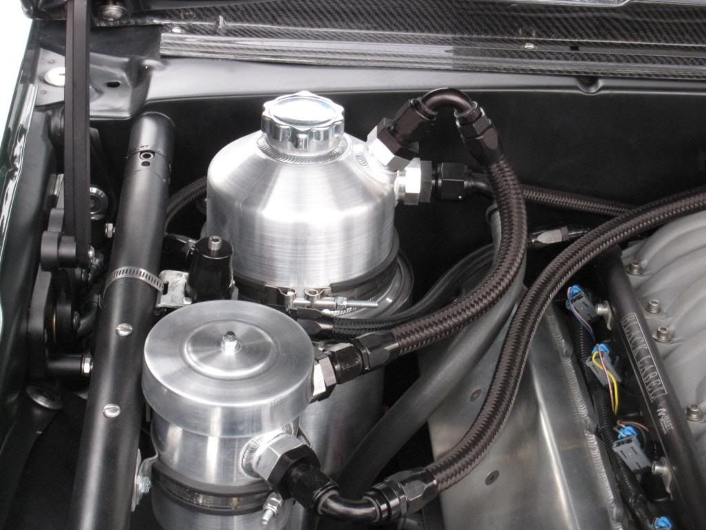 A lot of people aren't aware of how simple the OEM GM ''dry sump'' system is, it's a neat design but kind of comedic simplicity when you think of how a dry sump typically works. http://www.camarohomepage.com/ls7/images/784.43.jpg Most people that hide these things put it along the firewall with an oddly shaped or notched tank, or on the radiator support area, along with some other things and just build a bulkhead or cover or something. |