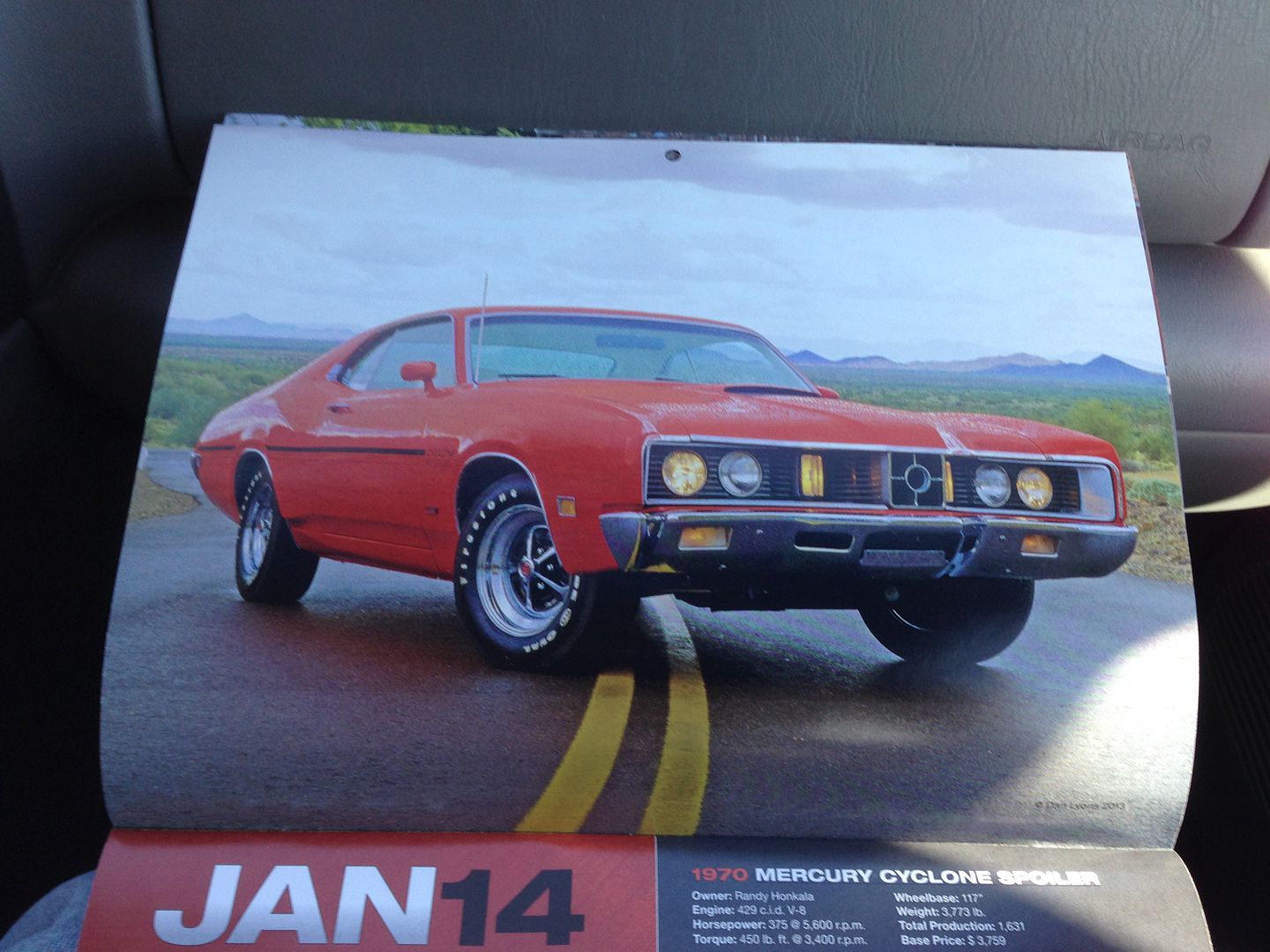 My 1970 Cyclone Spoiler 429 SCJ car made the 2014 NAPA Muscle Car Calendar