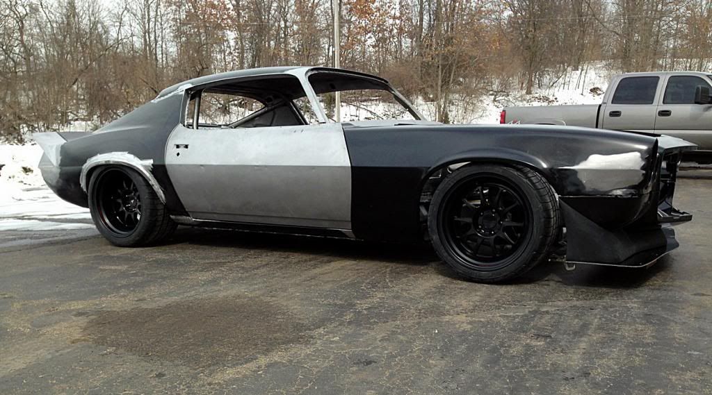 Front = 11.0X18, w/ 315/30-18 BFGoodrich Rival Rear = 12.5X18, w/ 335/30-18 tires BFGoodrich Rival Wheel Style = RAD 10 Finish = Black anodized center sections with powder coated autobahn satin black outer and inner rims with F43 red reflective race decals. Paul is going to build custom inner fenders on the front and also add a small flare front and rear to help fully clear and cover these monster steam rollers. Looking forward to seeing this Camaro finished and on the track! :thumbsup: http://i1216.photobucket.com/albums/...ps1f978422.jpg http://i1216.photobucket.com/albums/...psc9ca3898.jpg http://i1216.photobucket.com/albums/...ps204ddd85.jpg http://i1216.photobucket.com/albums/...ps3c82e40a.jpg http://i1216.photobucket.com/albums/...pse6854974.jpg :flag2: |
