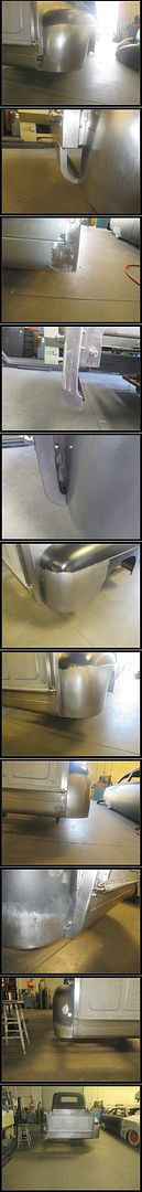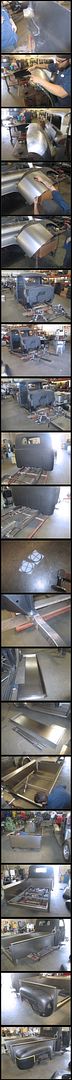 7.17.14: We got another update on the truck. Looks like they've got a lot done on the bed. They welded up the front and rear bed caps and cleaned up the corners. They welded studs into all of the rear fender mount holes, and then ground the welds flush to make the inside of the bed really clean with no bolt holes showing for the fenders. They also started on the roll pan, and extending the rear fenders to sit flush with the roll pan so there are large gaps between the roll pan and the fenders. It's looking pretty good, we're anxious to get it home and get our hands on it!
