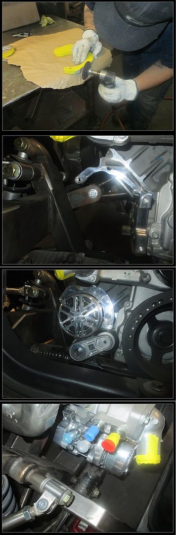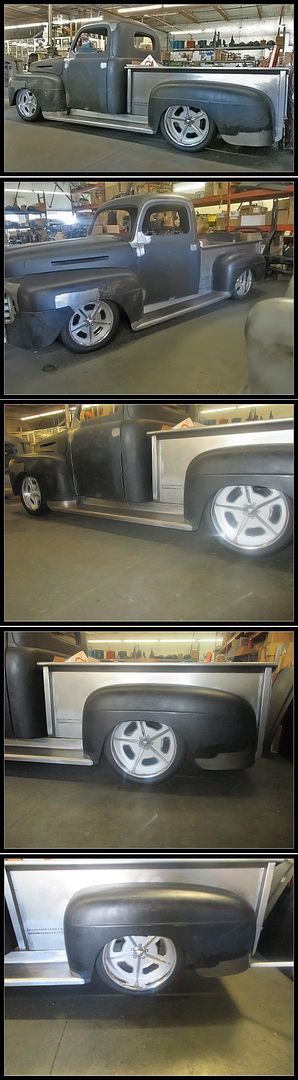 http://i91.photobucket.com/albums/k3...1.jpg~original 7.23.14: The guys at Scott's finished up the roll pan, and extending the rear fenders to meet up with the roll pan. I think it turned out pretty nice. This truck is going to look low and wide from the back with the roll pan and fenders like this. We should hopefully have another update later this week from Justin. http://i91.photobucket.com/albums/k3...e.jpg~original 8.7.14: Justin and the guys got started on mounting the seats, and building the center console. The seats look like they'll fit pretty good, and the console is turning out nice. Can't wait to see it welded up and finished, should be pretty cool! http://i91.photobucket.com/albums/k3...3.jpg~original 8.17.14: Well we finally drove back down to Scott's Hotrods to check out the truck in person. The truck looks really good! They've got the console welded up, the roll pan and rear fenders are done, along with the drip rails removed. Coming up they're going to be mounting the taillights, and making the license place pocket. Along with a bunch of other things. Here are a few pictures from this weekend. http://i91.photobucket.com/albums/k3...5.jpg~original 10.20.14: It's been a little while since the last update, so here is a little bit of what we've been up to. Right after we got back from going down and looking at the truck ourselves, Justin and the guys got the gauges installed. They installed them like we asked them, kind of in the design of the original cluster. Which we think turned out pretty good. They also got the taillights installed, along with the license plate pocket. The bed floor is started, and the tailgate hinges are installed. http://i91.photobucket.com/albums/k3...4.jpg~original We also finally got the running boards in. They are really good quality, but of course didn't fit perfect. So the guys at Scott's trimmed and sectioned some pieces to make them fit like a glove. We also got the HRBB wheels in finally. 20's in the back and 18's up front. http://i91.photobucket.com/albums/k3...d.jpg~original Justin and the guys also got the LSA and 4L85E installed finally. Looks pretty cool in there, and makes the firewall look really nice. They also got the door handles shaved, fixed some holes, and installed the hidden hinges. http://i91.photobucket.com/albums/k3...f.jpg~original And last on this update, we had to purchase the Concept One Ls9 compressor relocation kit to clear the frame. The upper portion of the bracket hit the water pump, so Justin and the guys had to machine the bracket down to clear. Now it's all good and has a nice amount of clearance all over. http://i91.photobucket.com/albums/k3...3.jpg~original 11.4.14: We got an update from Justin and the guys at Scott's that the truck is finally sitting on the wheels. It's a rough idea where it'll be at for ride height. It's pretty cool seeing it on the ground finally, can't wait to see it again in person. http://i91.photobucket.com/albums/k3...9.jpg~original 12.26.14: The truck is finally home. Bob the owner and a few of his friends took the day off and ran down to Southern California to pick up the truck from Scott's Hotrods. Kody over at Scott's is the man that did the majority of the work on the truck. And he did some great work. The metal work is so well done both aesthetically and physically. Unfortunately Kody was on vacation when he went to pick up the truck so he didn't get to meet him. I stopped by the shop on my way to SEMA and met Kody then. Very nice guy to talk to, even though I was bugging him on a Thursday afternoon. Bob was honestly a little beside himself rolling it into the garage and seeing what he's got sitting there. The scary part is now it's time for us to get to work to get it done. Here are a few pics of the truck. Pardon the extra blower lid on top of the engine in a couple of pictures, I put it there to see what the other style looks like and I forgot to take it off. The last picture is a good shot of the LSA as it sits in there. https://farm9.staticflickr.com/8627/...1ceeabe4_o.jpg |