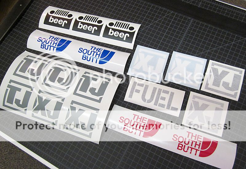 Guys, if you need any sort of vinyl stickers I can do them and in most cases ship them same day. I've been doing alot of Jeep stuff, but can do anything needed, including brand name logos. Costs are very reasonable. Here are samples:
