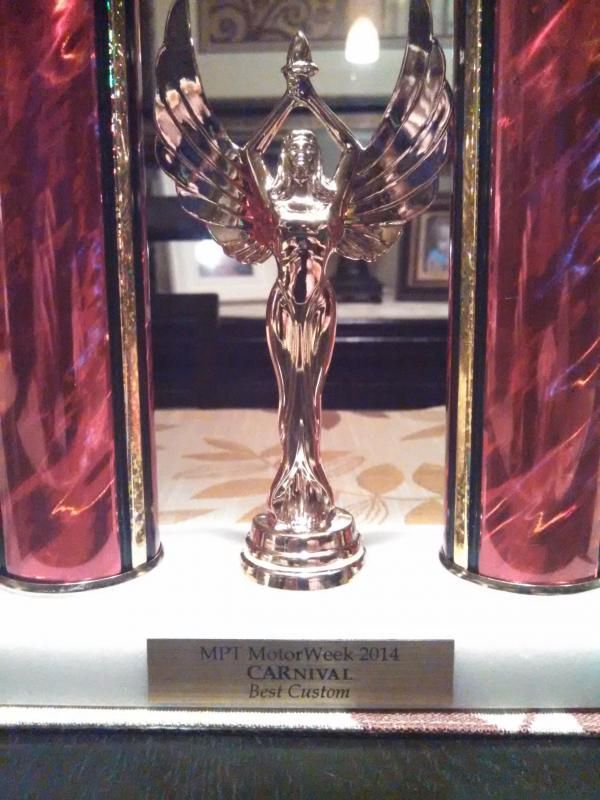 Anyway, finally got all of the tuning issues worked out and it ended up making 362 HP at the rear wheels on a Dynatech dyno. Not too shabby for a NA 5.3 with mild mods. Nope, no 1000+ HP here, but enough to make the ol' Chevelle scoot down the road pretty good. Took it on its maiden 100 mile road trip. It drove flawlessly. Went to the Motorweek CARnival show where it took home a best in class trophy! Pretty cool. http://i198.photobucket.com/albums/a...ps303a62ef.jpg http://i198.photobucket.com/albums/a...psffa6c453.jpg http://i198.photobucket.com/albums/a...psb8c16130.jpg http://i198.photobucket.com/albums/a...ps545b9c46.jpg http://i198.photobucket.com/albums/a...ps67c6d0e0.jpg |