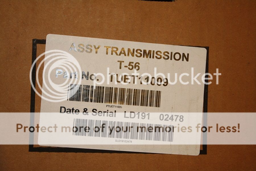 Price:$2800 Description: T56 Magnum for LSx engines. 2.66 first gear and .63 6th gear. The transmission is new and still on the crate upon which I received it. It will come in it's original box. I'm selling it as I have purchased a different T56 magnum with a longer tailshaft which is better suited for my application. I'm looking for a local sale as I'm not willing to ship the box at this time. Post here or PM me for details. Thanks http://i412.photobucket.com/albums/p...umforsale1.jpg http://i412.photobucket.com/albums/p...umforsale2.jpg http://i412.photobucket.com/albums/p...umforsale4.jpg http://i412.photobucket.com/albums/p...umforsale3.jpg |